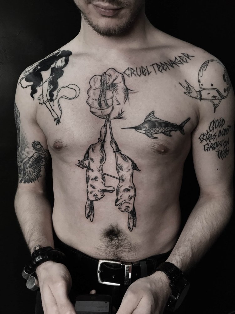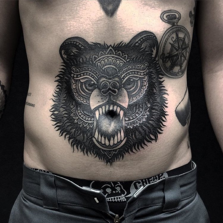 Мужские тату на животе: