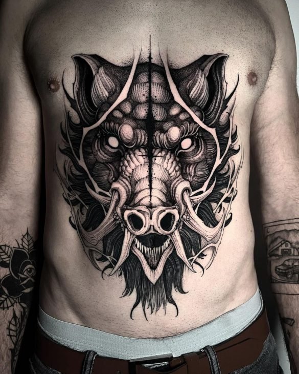 Татуировки на животе для мужчин - это эффектное проявление боди-арта и мощный месседж, что составляет невероятное впечатление и имеет большую эстетическую ценность.