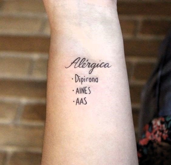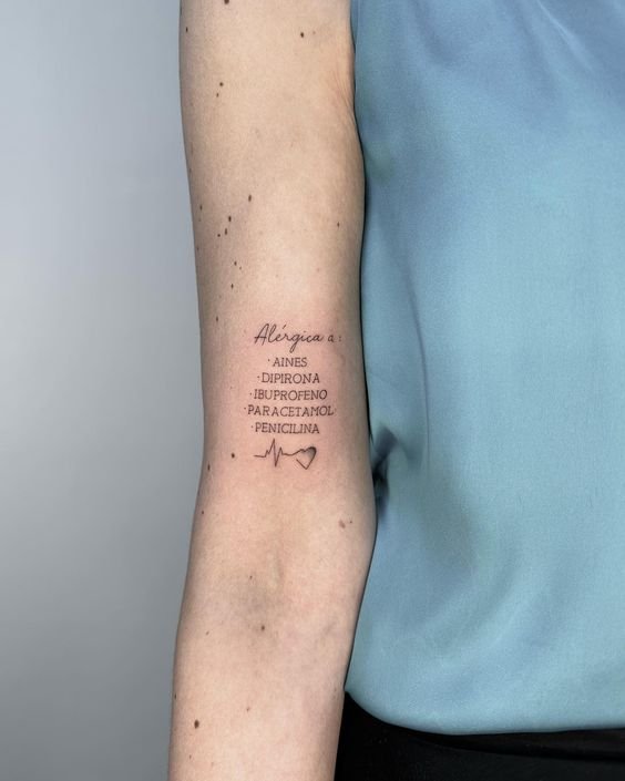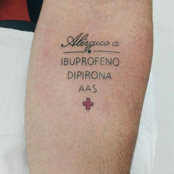 - Аллергические предупреждения. Люди с тяжелыми аллергиями, например на пенициллин, часто делают татуировки с указанием опасных для них веществ. Это помогает медикам быстро принять правильные решения.
