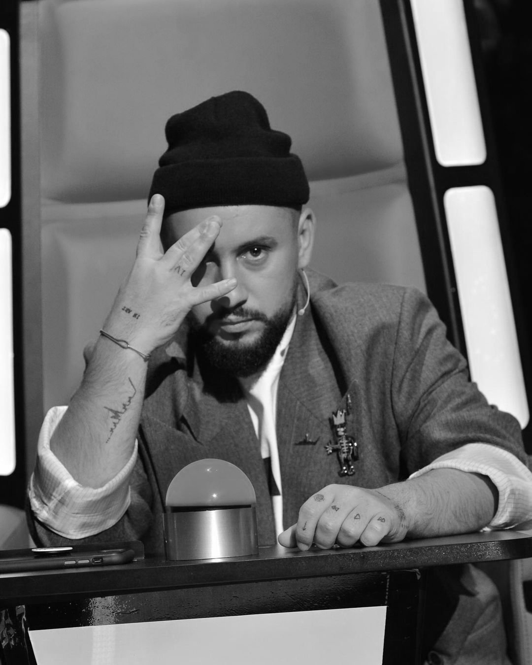 На правой руке оригинальный графический элемент, который появился на запястье певца в 2013 году.