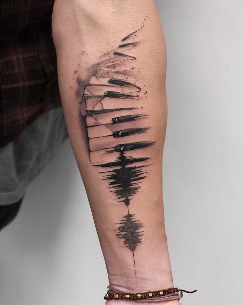 Клавиши пианино – популярный дизайн, который кроме увлечения музыкой показывает философское отношение к жизни. Чередующиеся черные и белые клавиши ассоциируются с удачными и тяжелыми моментами жизни. Выбирайте эскиз, чтобы продемонстрировать стойкость характера, умение справляться с неприятностями и терпеливо ждать лучших времен.