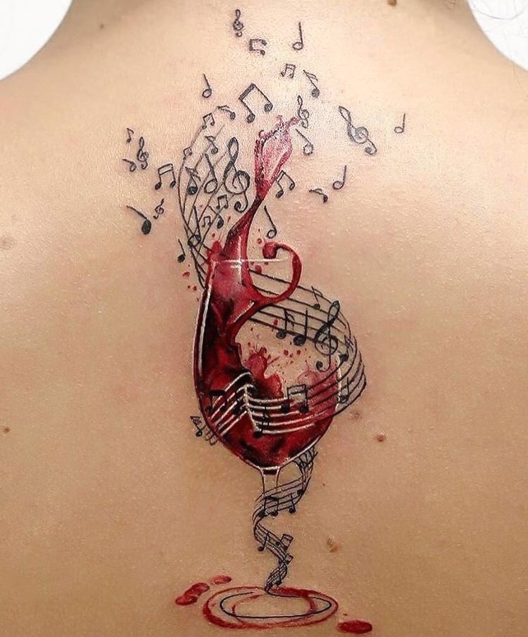 Татуировки, связанные с музыкой, предусматривают широкие возможности для творческого самовыражения. Искусство музыки вдохновляет на создание эксклюзивных эскизов, которые несут глубокий смысл для владельца. Музыкальные тату размещают в любой части тела – на шее и плечах, руках и пальцах, спине, груди и бедрах. Размеры нательных рисунков значительно варьируются и зависят от пожеланий владельца.