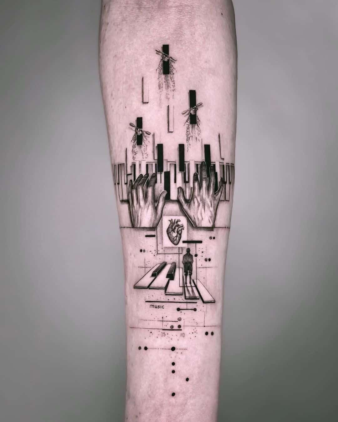 Музыкальные тату – универсальный вариант, который подходит всем любителям музыки.