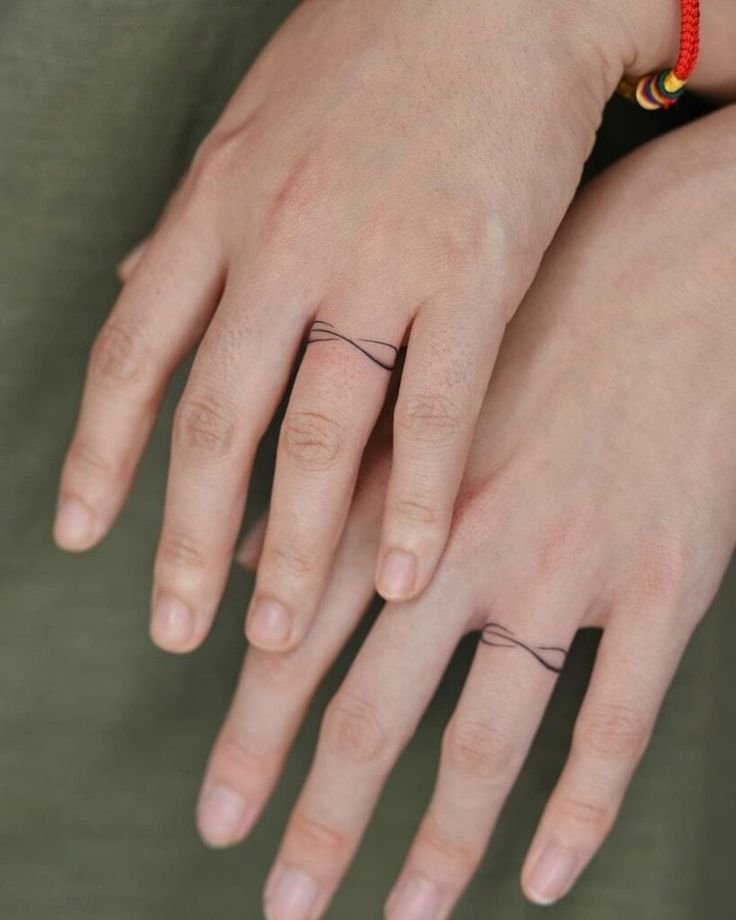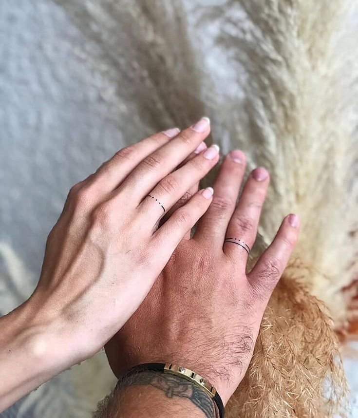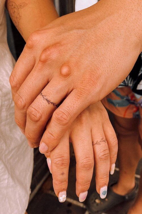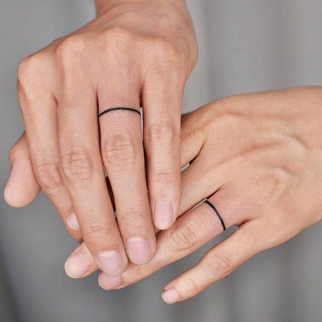 В последнем случае татуировки выполняются на безымянных пальцах и заменяют традиционные обручальные кольца.