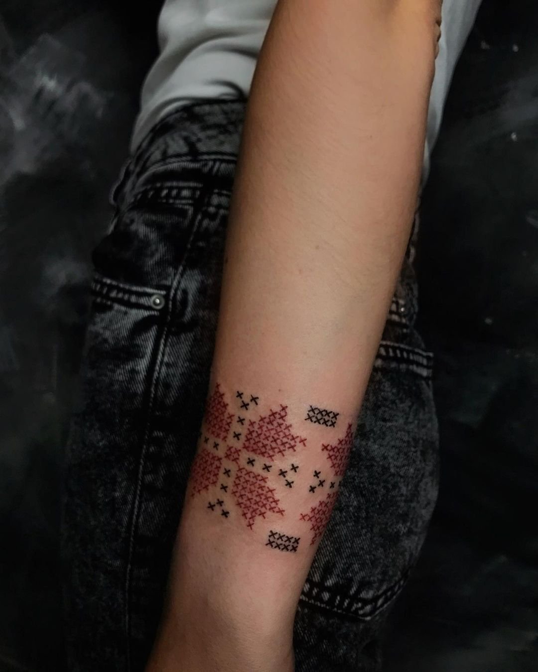 - Татуировка орнамента (вышиванки) демонстрирует любовь к родине, уважение к предкам, уважение к традициям.