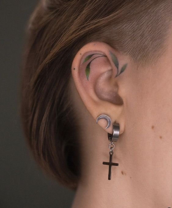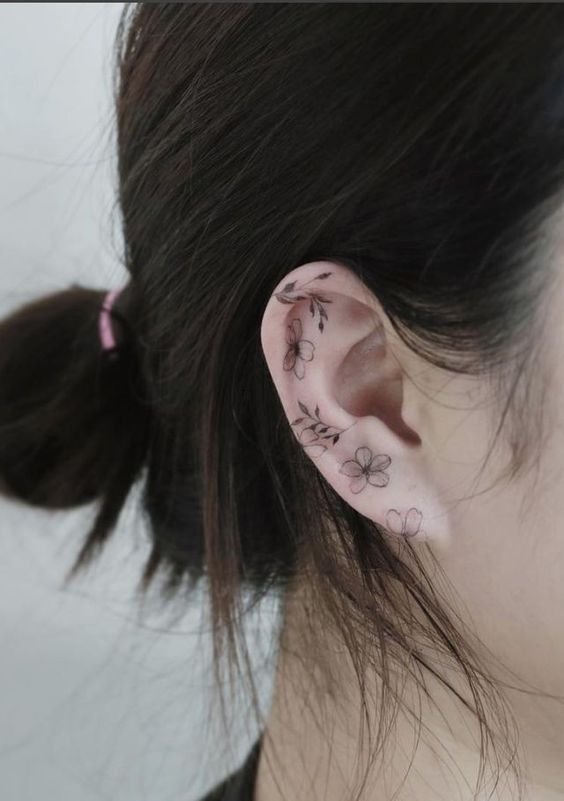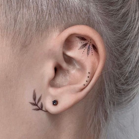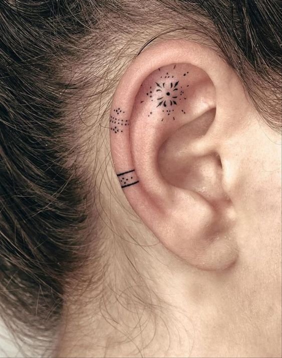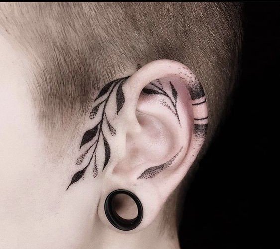 Ушные татуировки можно делать на внешней части ушной раковины, за ухом, внутри или на мочке. При этом, важно знать, что ухо довольно специфическое место, так как имеет ограниченную площадь для рисунка. Поэтому, чаще всего здесь используют небольшие надписи, абстракции, разные линии и круги, маленькие цветы, сердца или другую минималистическую графику.