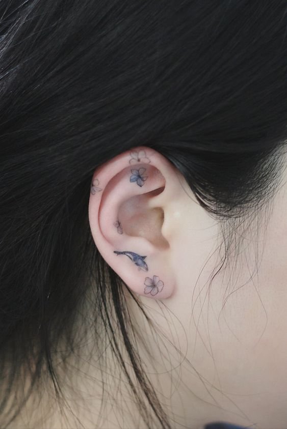 Это вариант для тех, кто мечтает о тату, но не хочет слишком ее выставлять напоказ. А татуировку на ухе можно легко прикрыть волосами.