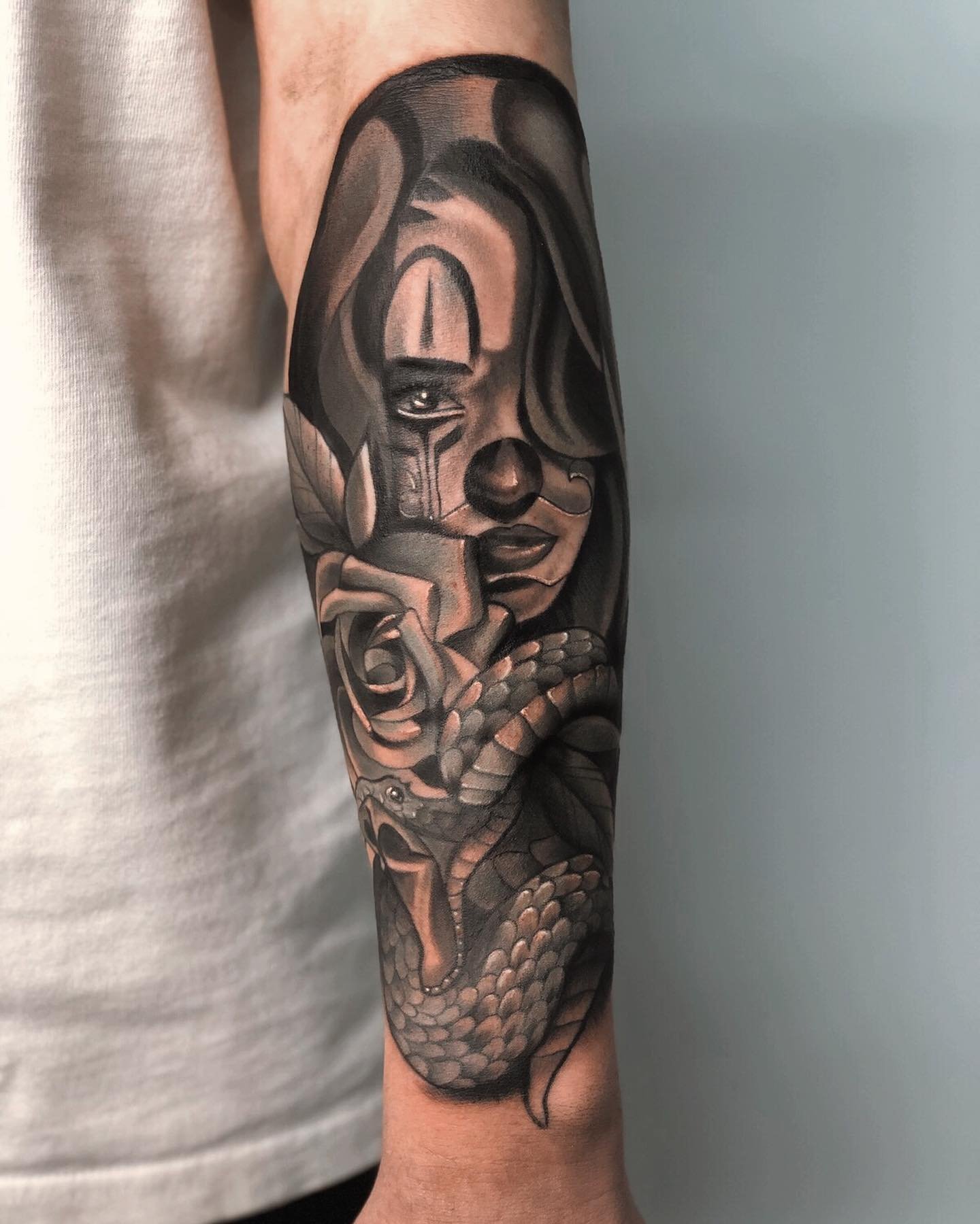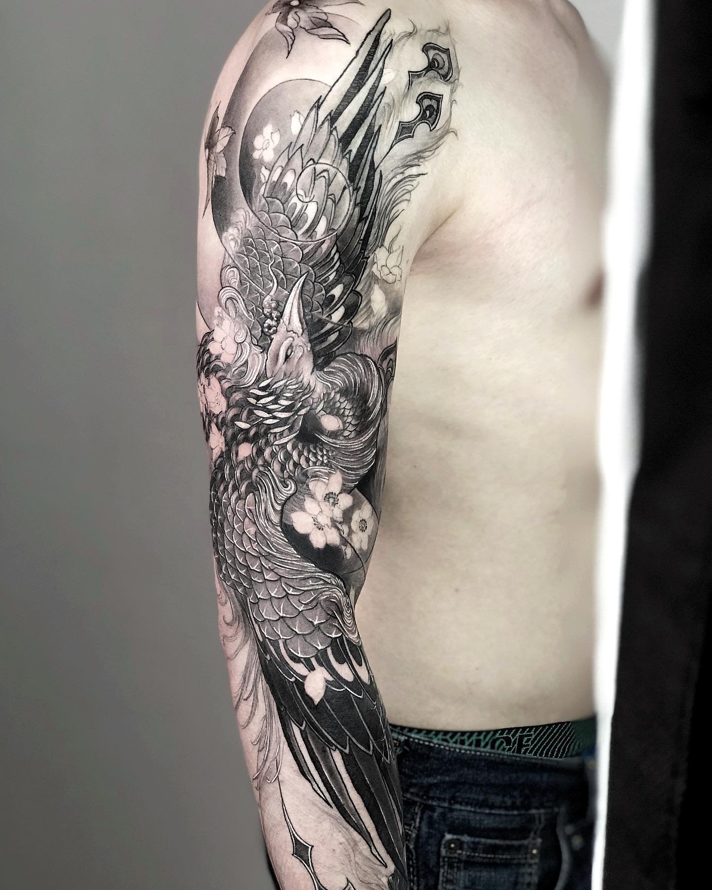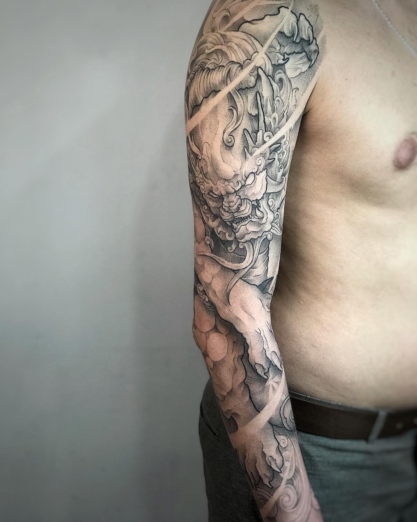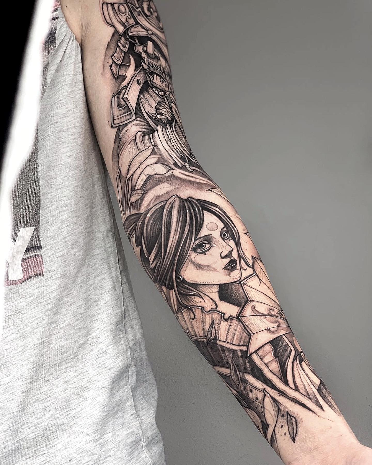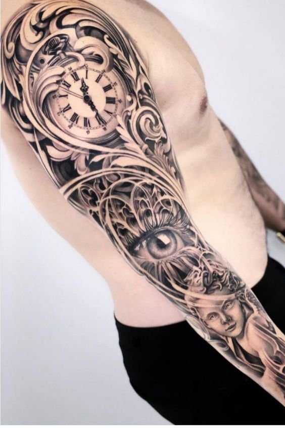 Рукав в черно-белых тонах - это классический выбор. Он всегда будет стильно смотреться и выгодно подчеркивать мускулатуру мужской руки. А коррекция куда проще, чем тот же рукав, но в цвете. На фото ниже представлены самые популярные стили в черно-белой стилистике.
