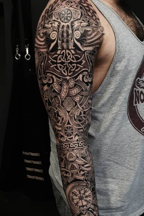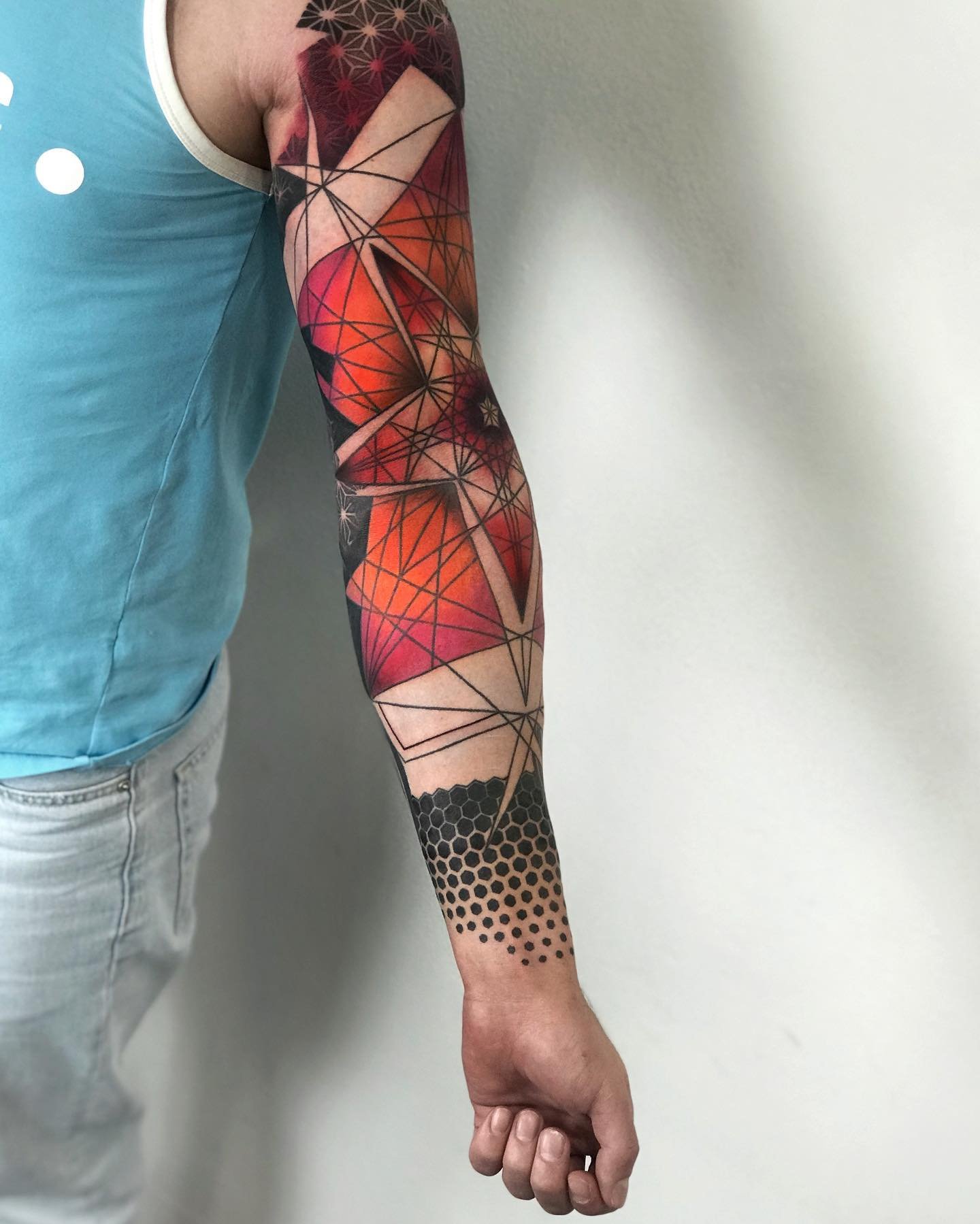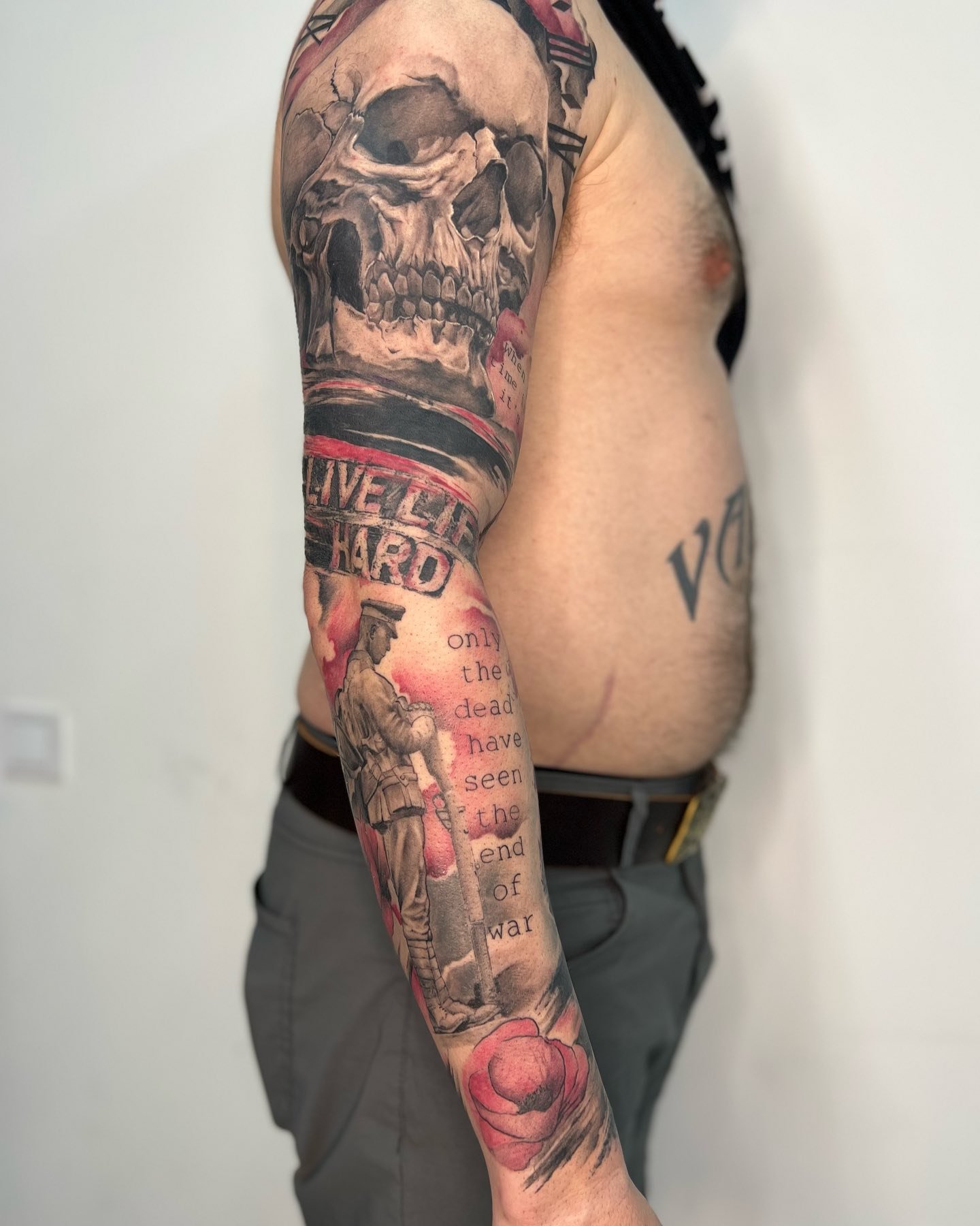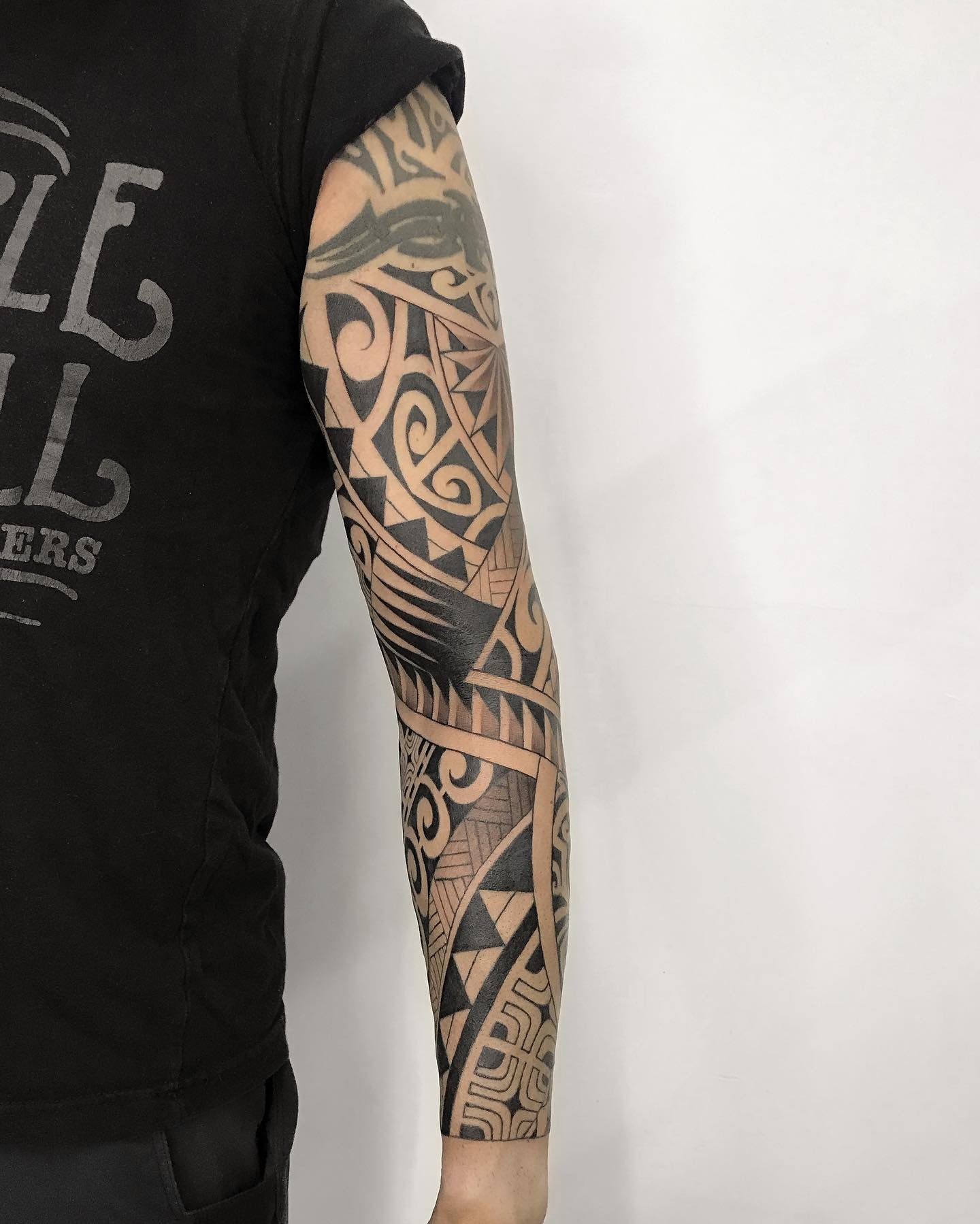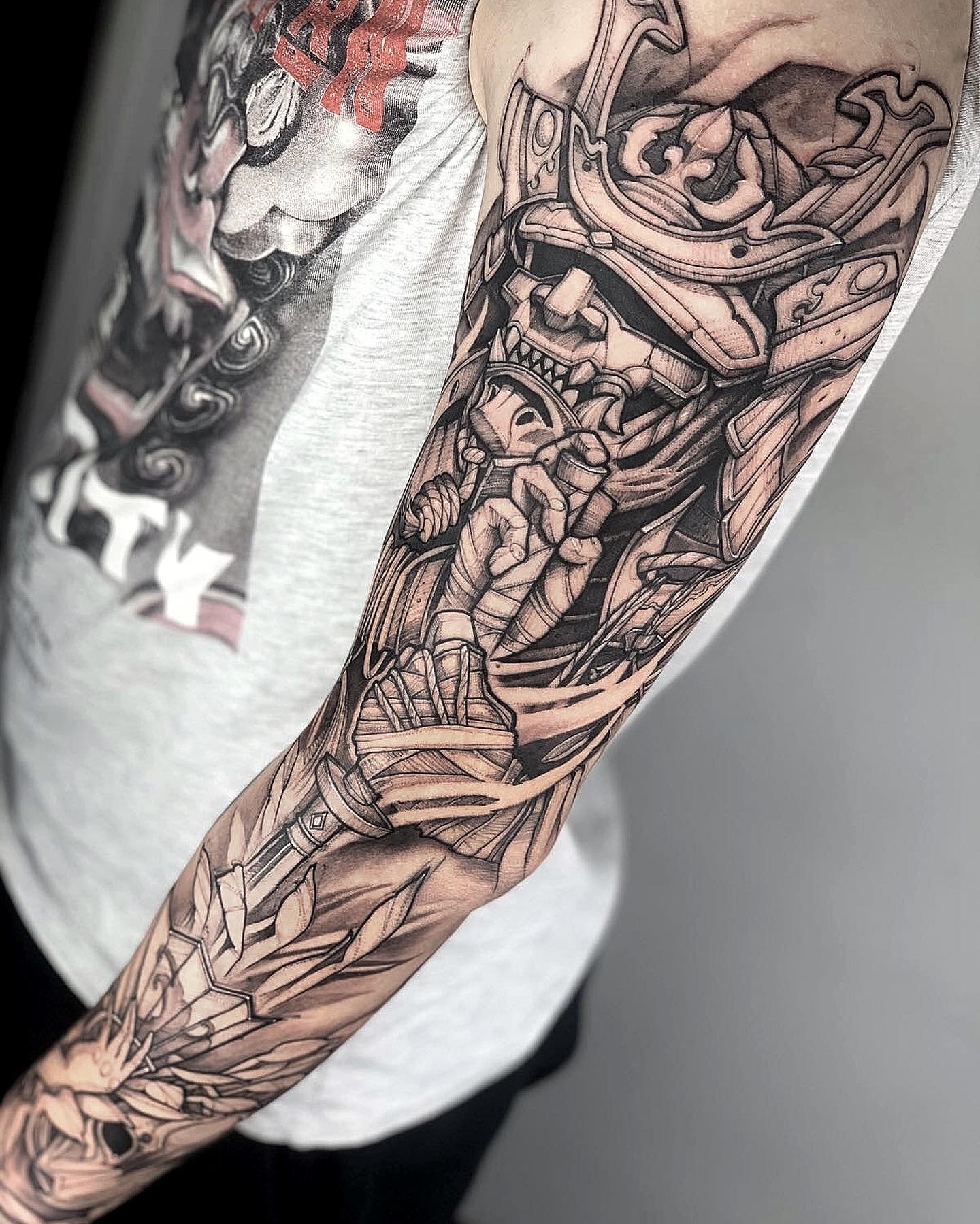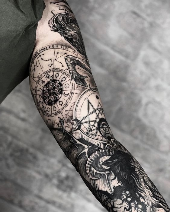 Так как площадь руки немаленькая, выбрав две-три большие татуировки, Вы всё равно столкнетесь с тем, что максимум половина рукава будут покрыты.