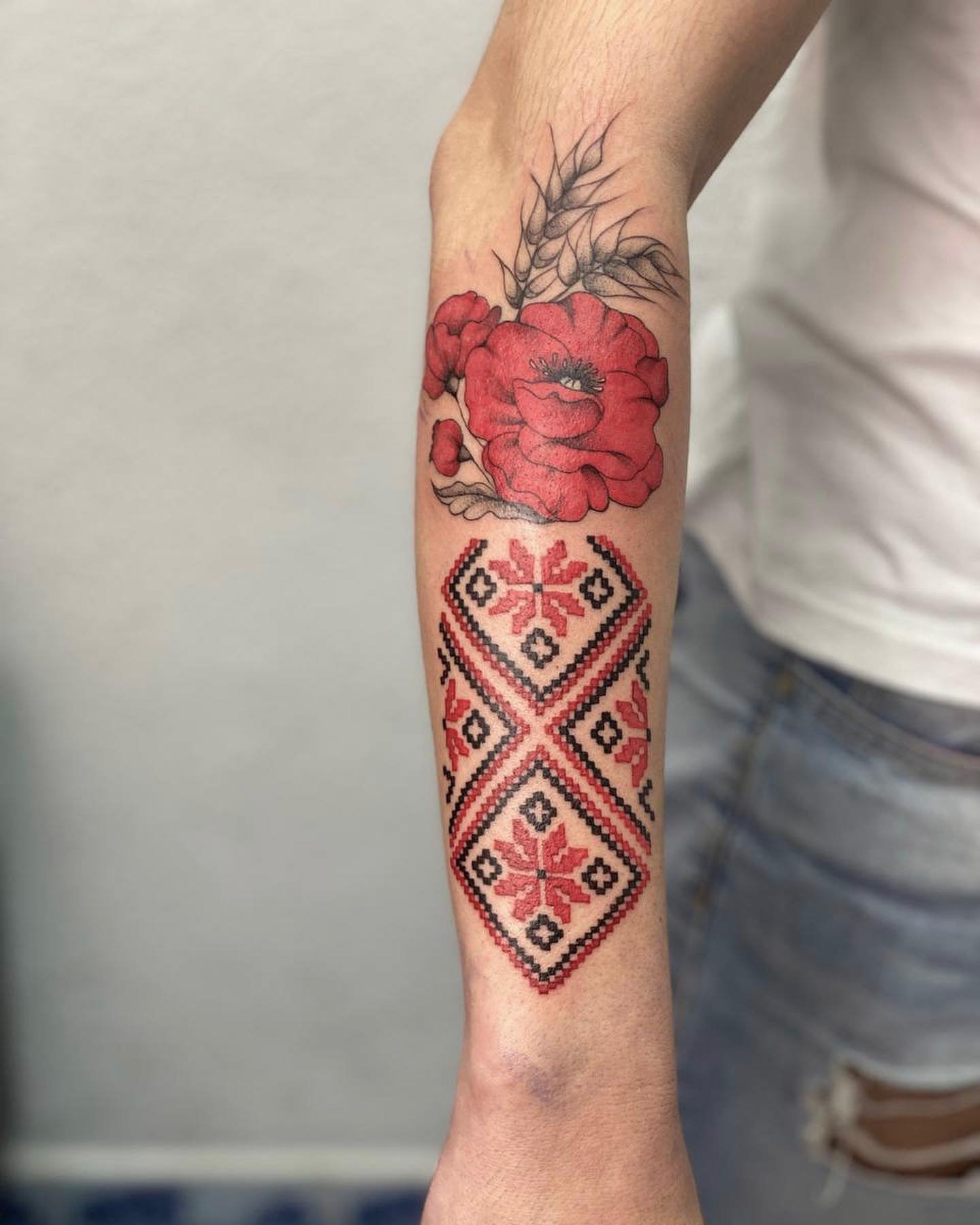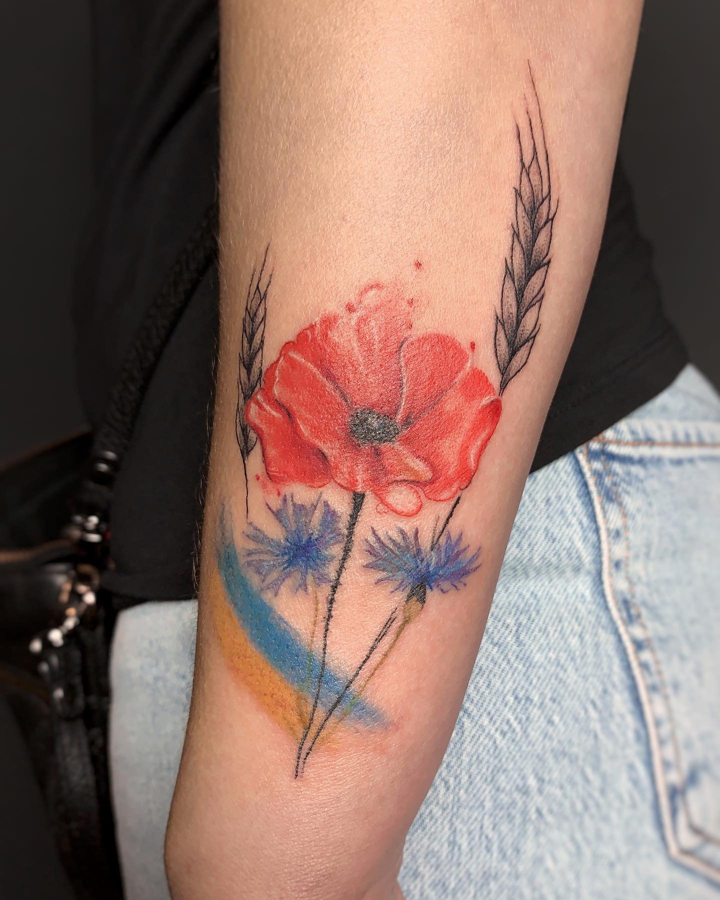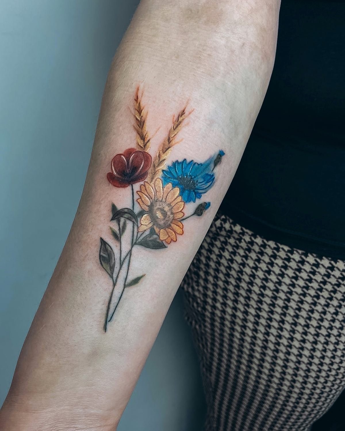 Женская патриотическая татуировка поражает своей органикой, все элементы взаимодействуют между собой, имеют общий мотив. И, если мужчины предпочитают татуировки лаконичные и несколько суровые, то украинские волшебницы выражают свою любовь к родине через нежность.