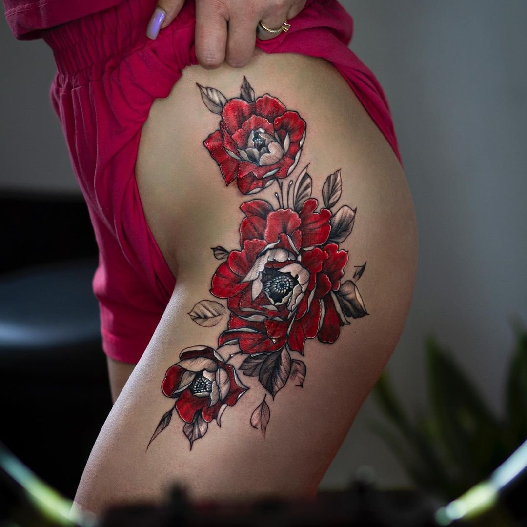 Большинство мест на бедре имеют небольшое количество нервных окончаний и значительный слой мышц. По сравнению со многими другими участками, татуировки на бедре менее болезненны.