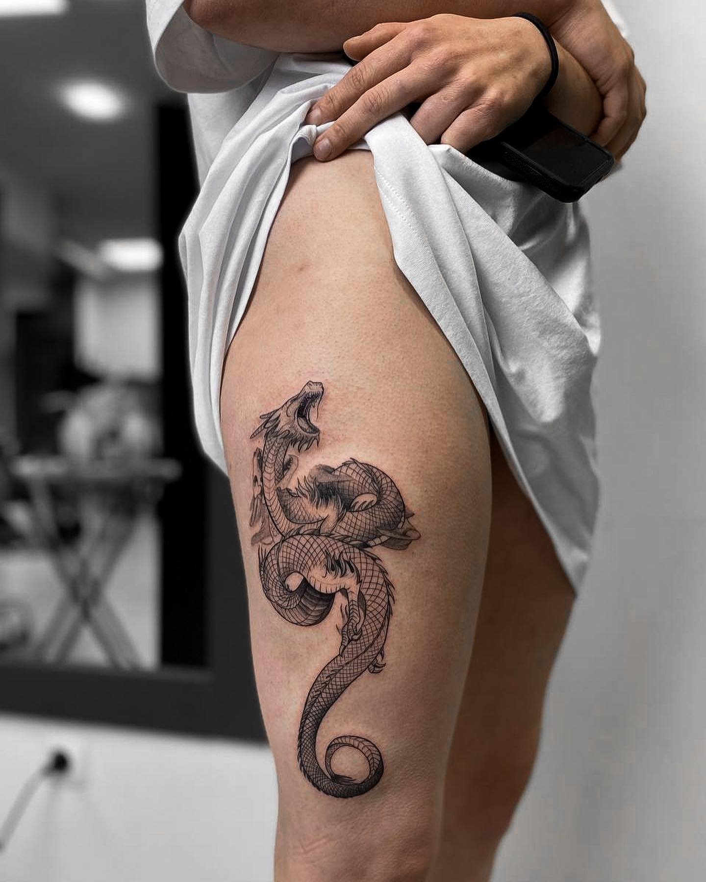 Если вы еще не задумывались о тату на бедрах, возможно самое время? Этот участок позволит воплотить в жизнь эскизы любой сложности и масштаба. Независимо от стиля и техники исполнения, рисунок на теле может стать настоящим произведением искусства. Это возможно при участии опытного мастера и ответственного подхода владелицы тату. Боди-арт на бедре - всегда хороший выбор.
