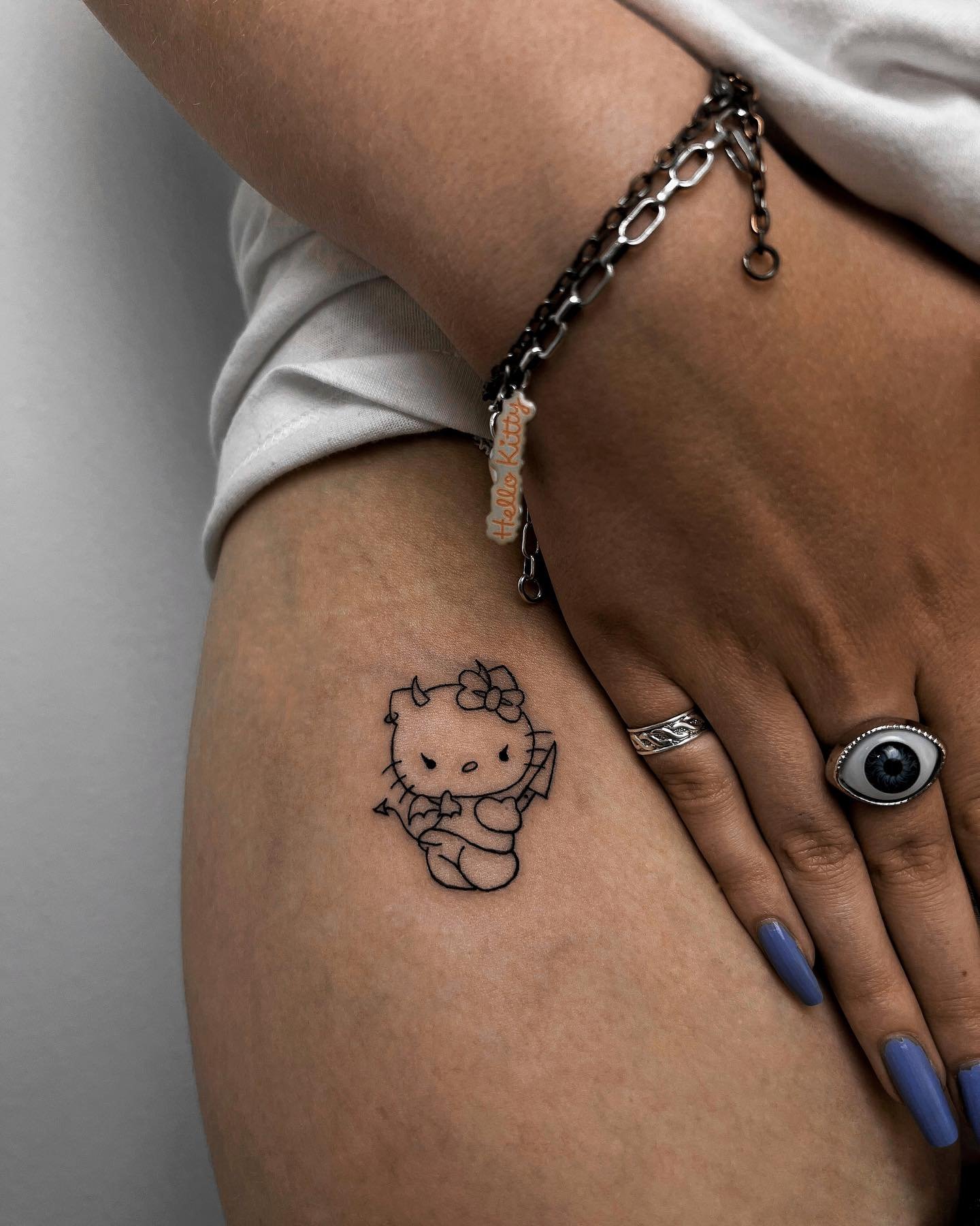 - Тату на бедрах медленнее теряют цвет, ведь они реже контактируют с солнцем.