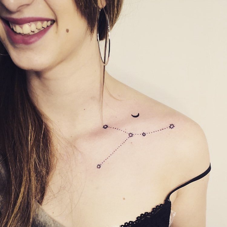 Такое расположение также будет особенно уместным для минималистичных эскизов. К примеру, тату созвездие Рыбы или глиф этого знака зодиака на ребрах или запястье будет выглядеть женственно и даже немного мистически.
