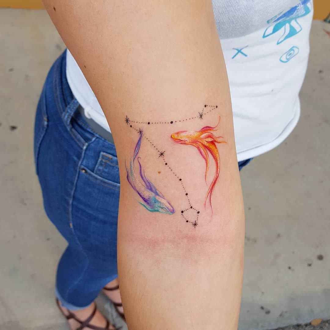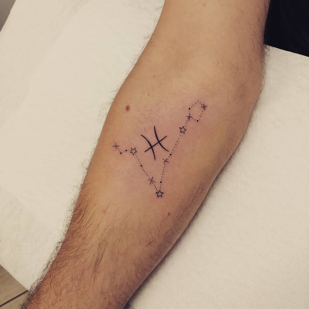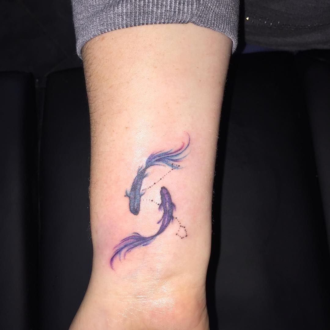 Итак, тату созвездие Рыбы или знак зодиака Рыбы редко бывают массивными и грубыми. Учитывая символы, с которыми ассоциируется этот знак, такие тату обычно выглядят стильно и минималистично.
