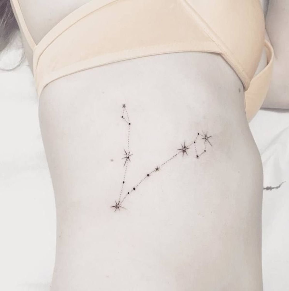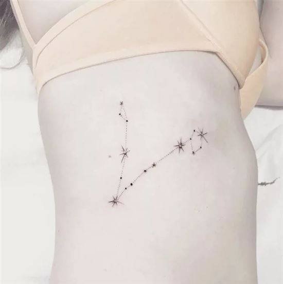 Такое расположение также будет особенно уместным для минималистичных эскизов. К примеру, тату созвездие Рыбы или глиф этого знака зодиака на ребрах или запястье будет выглядеть женственно и даже немного мистически.