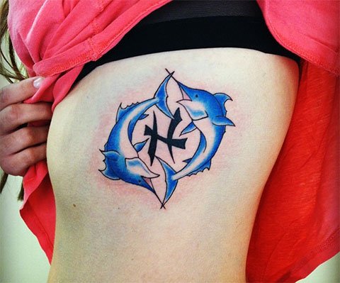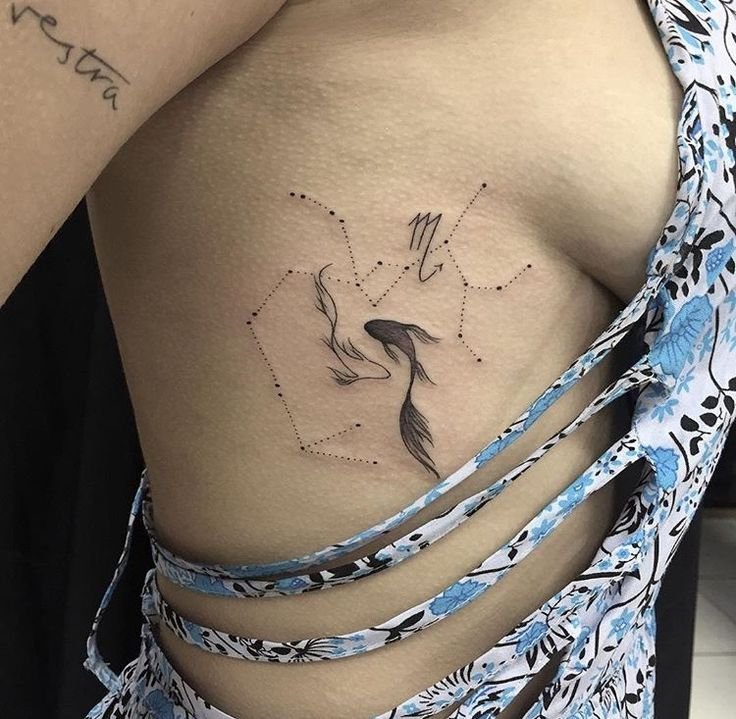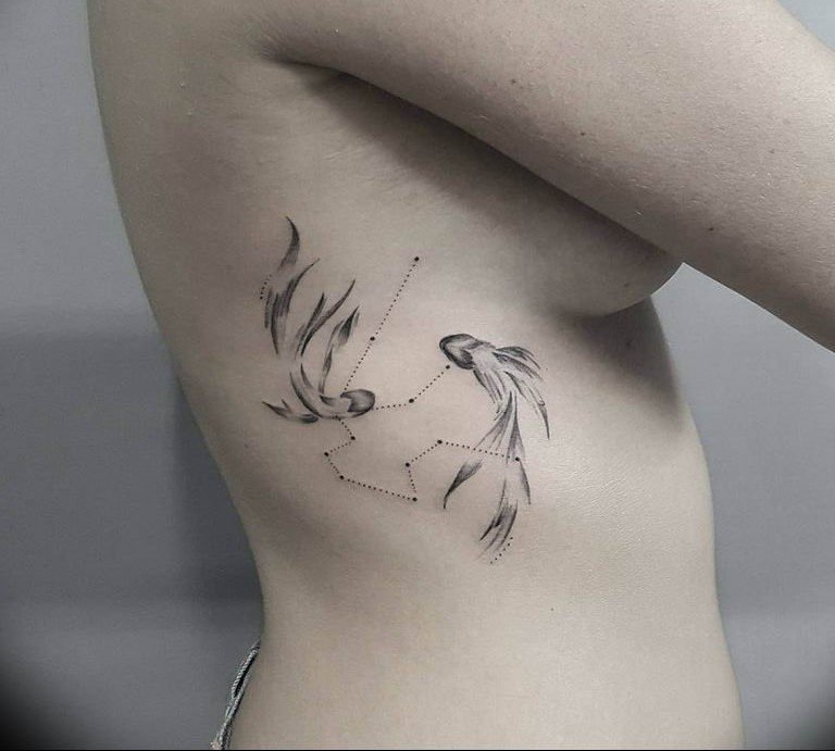 - Тату знак зодиака Рыбы на ребрах;