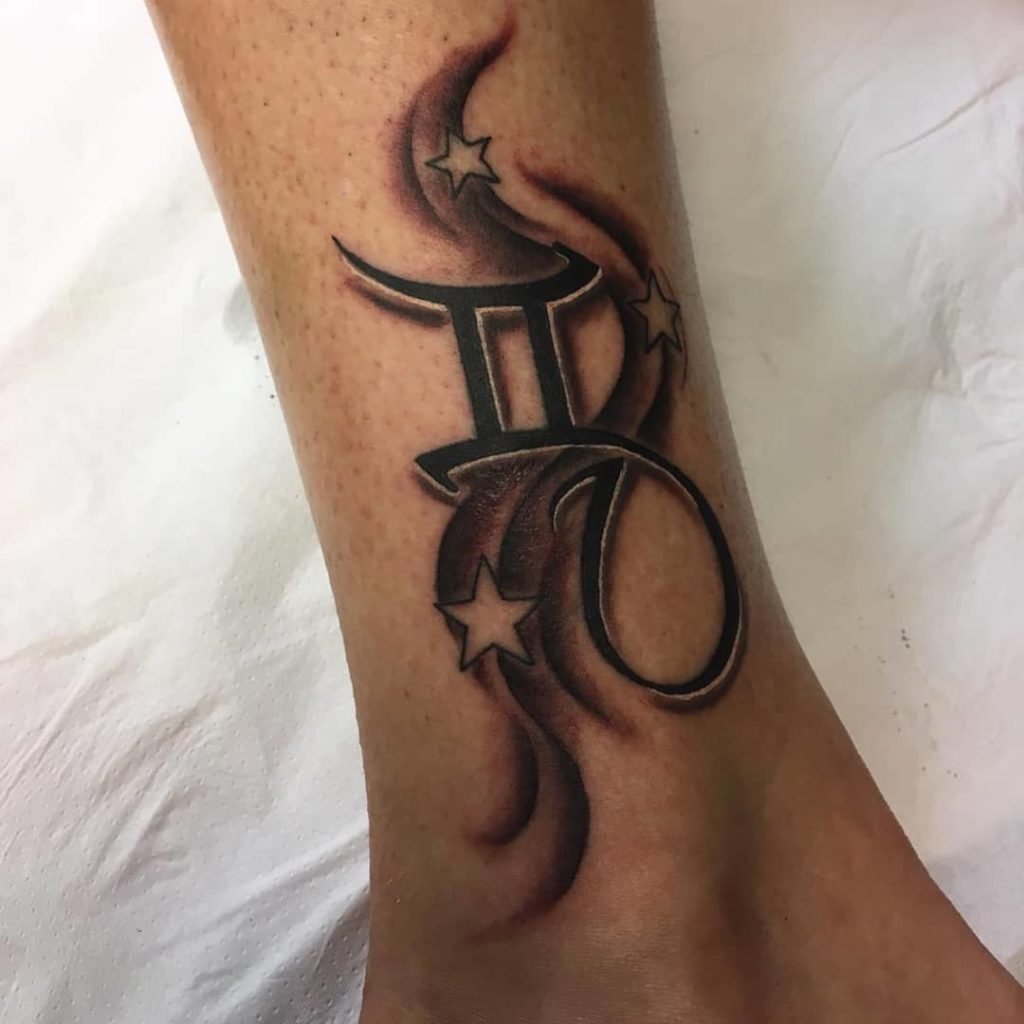 - Тату знак зодиака Рыбы на лодыжках.