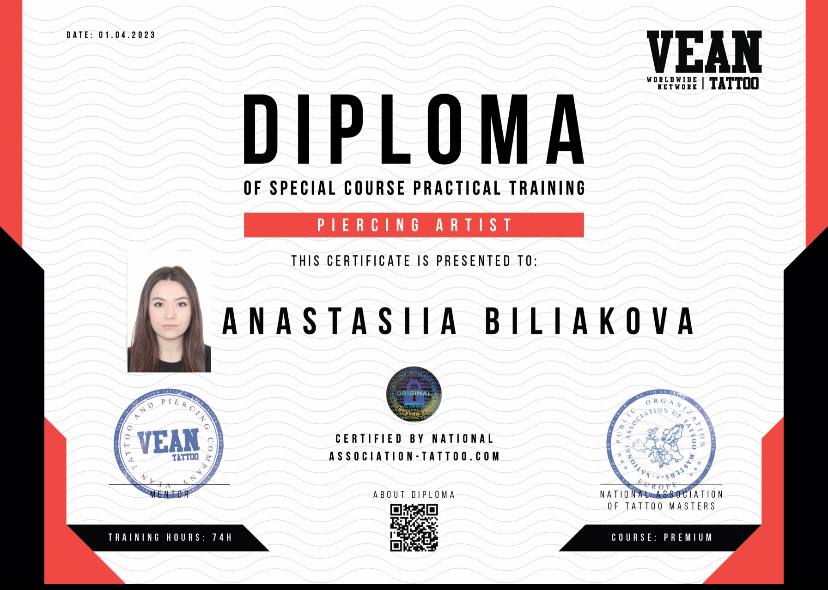 Hello everyone, I'm Anastasia, a piercing specialist you'll definitely want to come back to. I love my job very much and adore vibrant people even more.