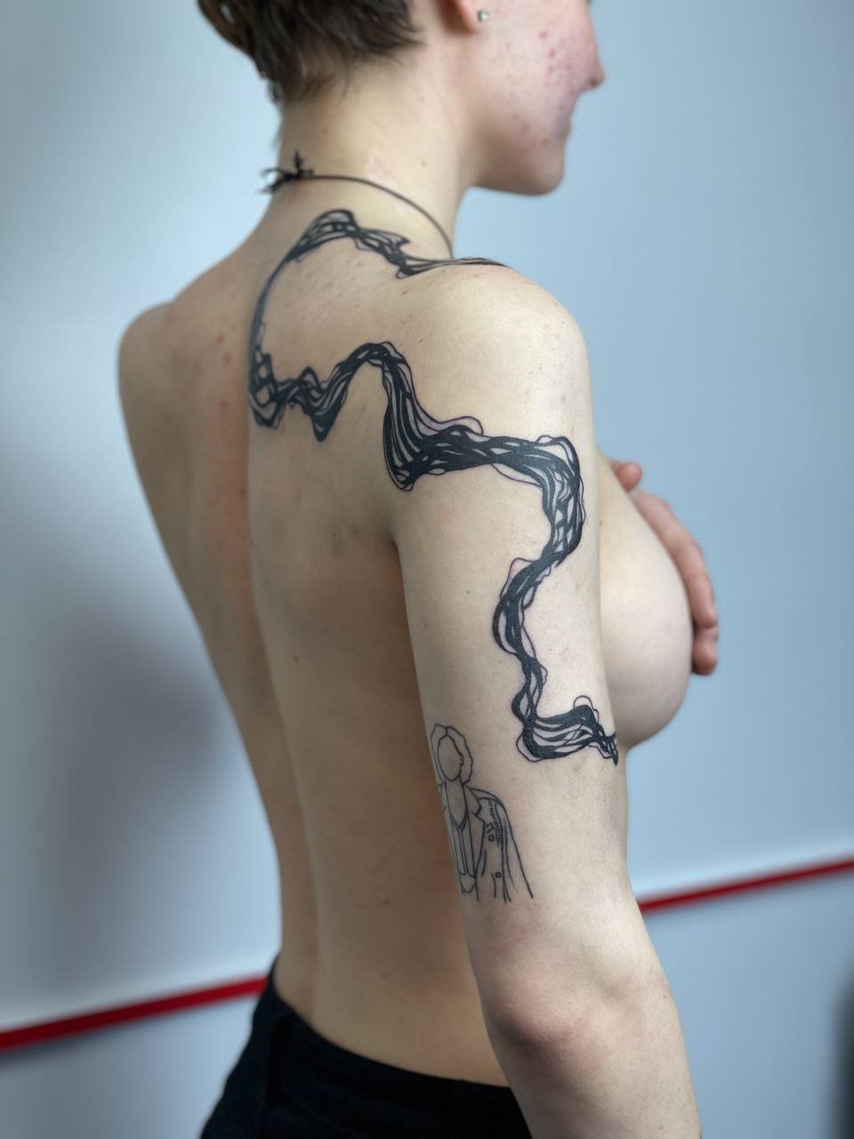 My name is Anastasia. For me a tattoo is about a state of mind, each picture is a reflection of a person. I love my work for what I can help my client to open up. I will be glad to help with creation of the individual sketch. I work in a variety of styles, from gentle minimalism to rough biomechanics. So I am confident that I can create a tattoo that is right for you.