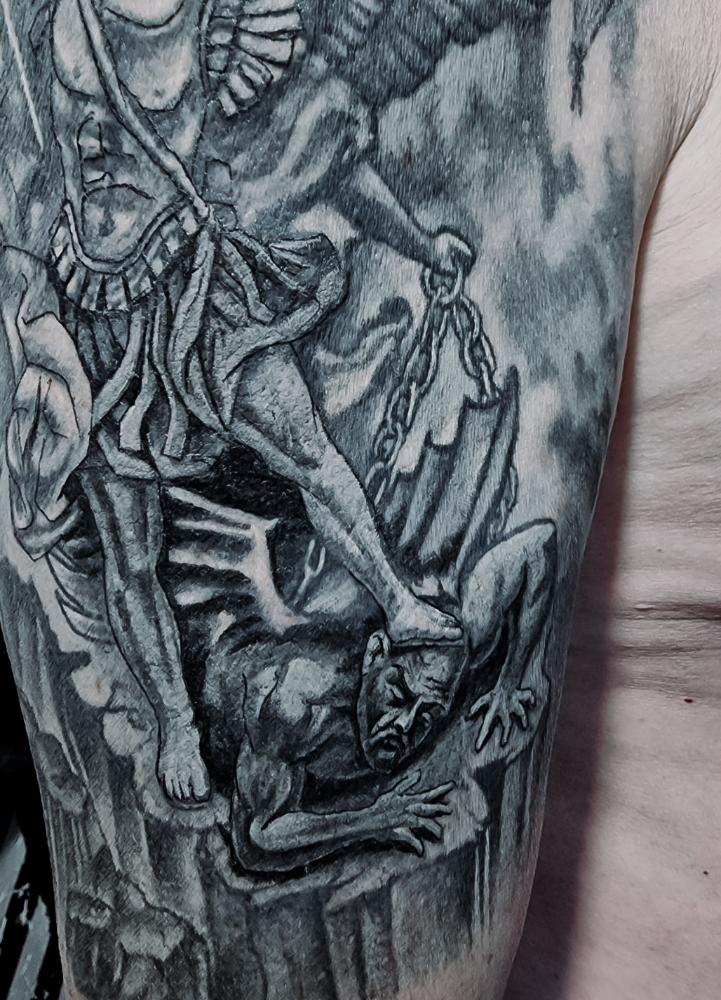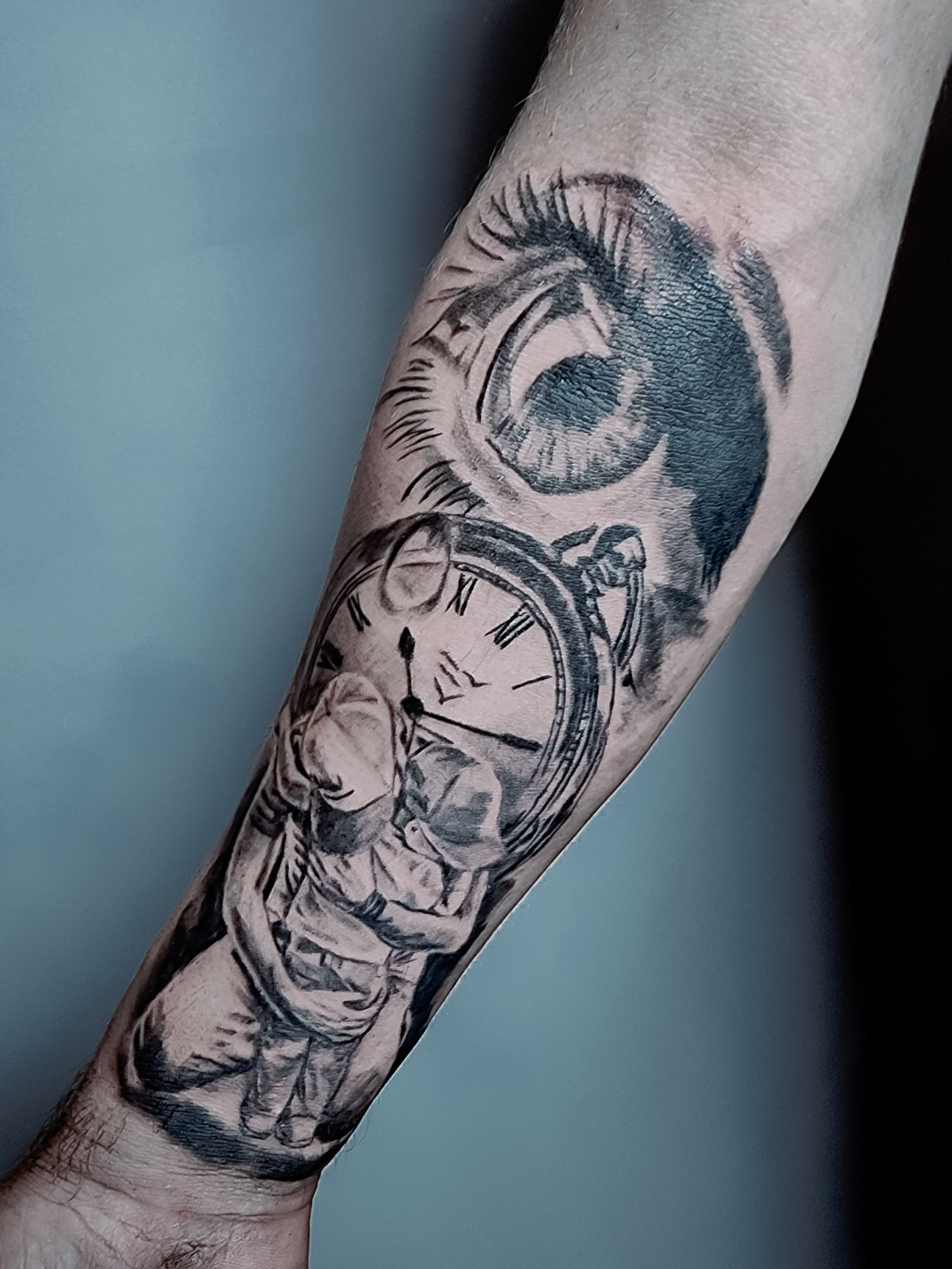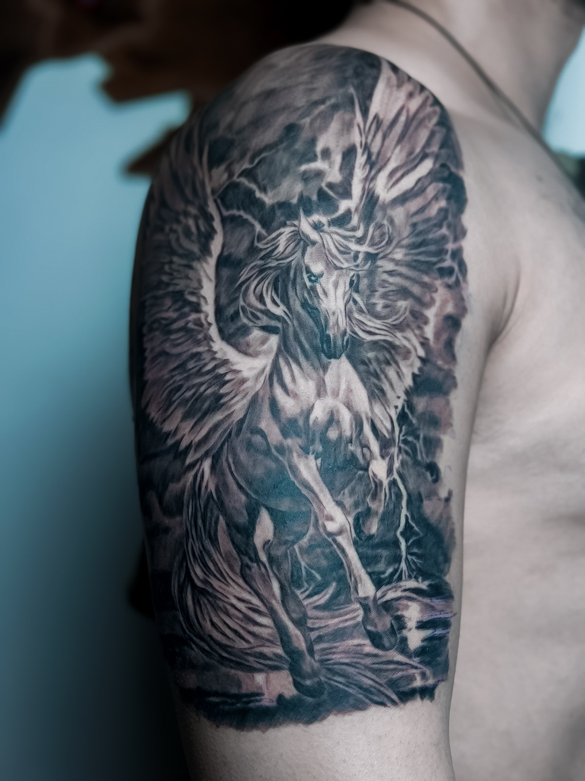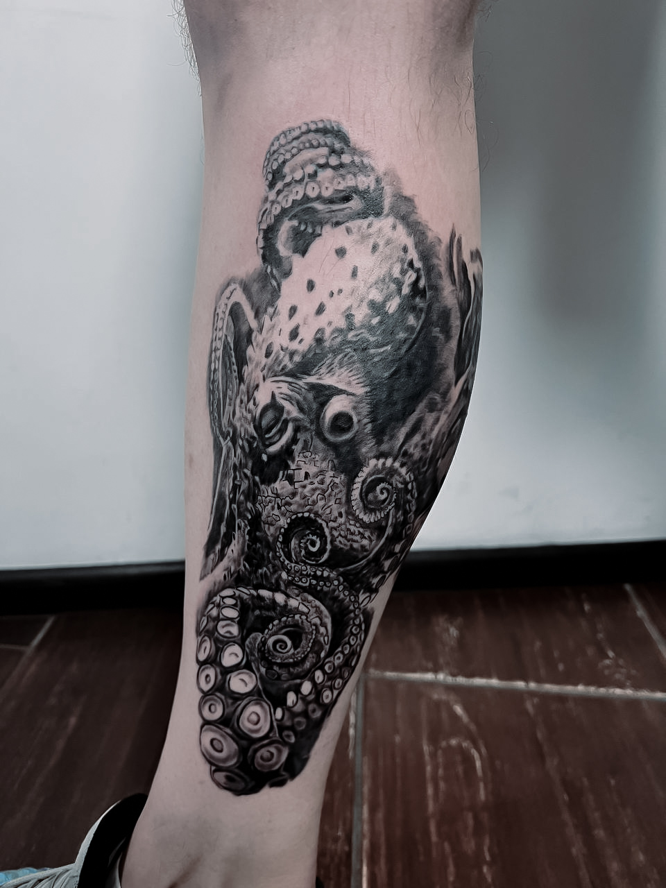 Almost all my life I am engaged in drawing and I love it very much. I was invited to the studio by a tattoo artist I know. Thanks to him now I work here. I prefer black and white drawings and tattoos. I work cool with shadows!