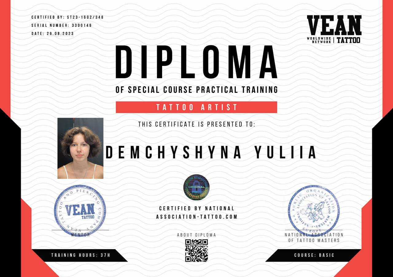 I completed a tattoo artist training course and have already improved my qualifications. I work in various styles, but I especially love graphics, mini-realism, tribal, and anime. I have been drawing for over 10 years, so I will gladly create an individual and original sketch for you.