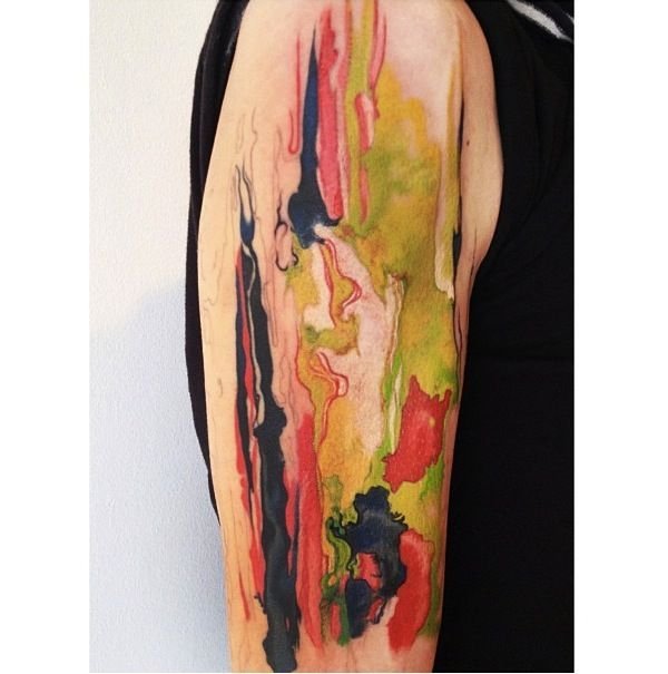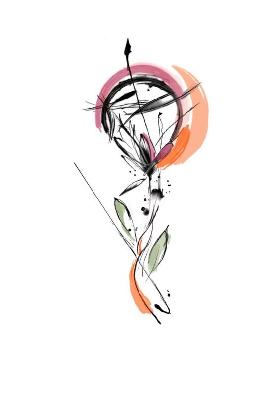 - Обтекаемость мягких линий и пастельность тонов - абстракция в таком исполнении говорит о мягкости человека, безобидности и чуткости; татуировки такого исполнения больше подходят для женщин;