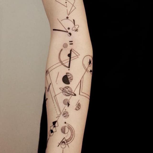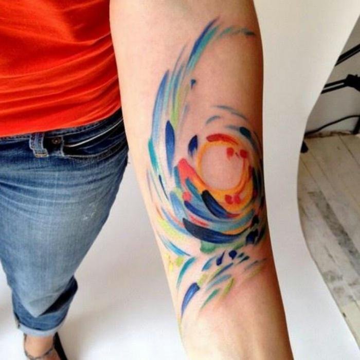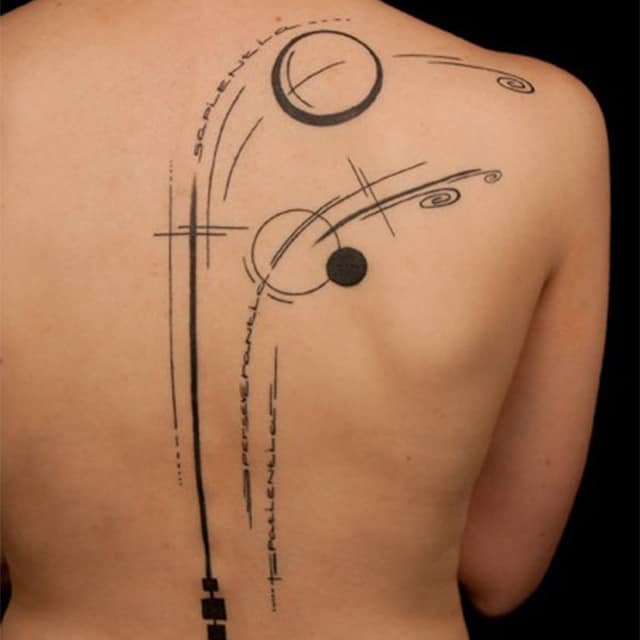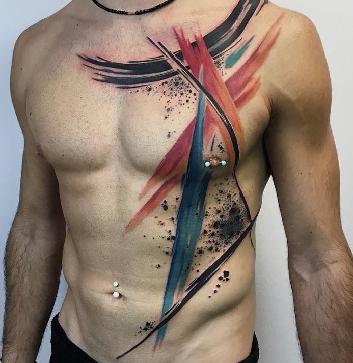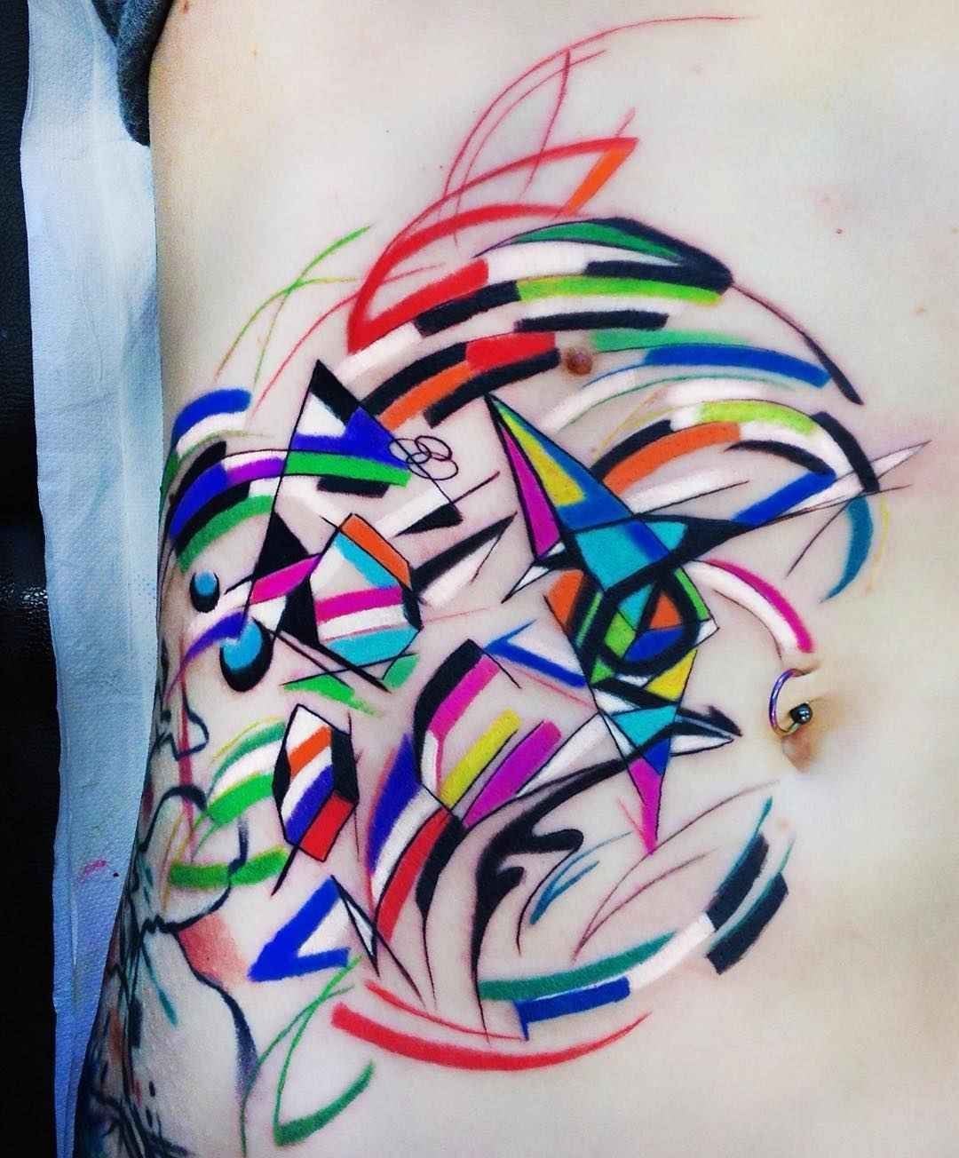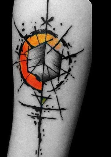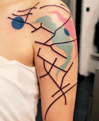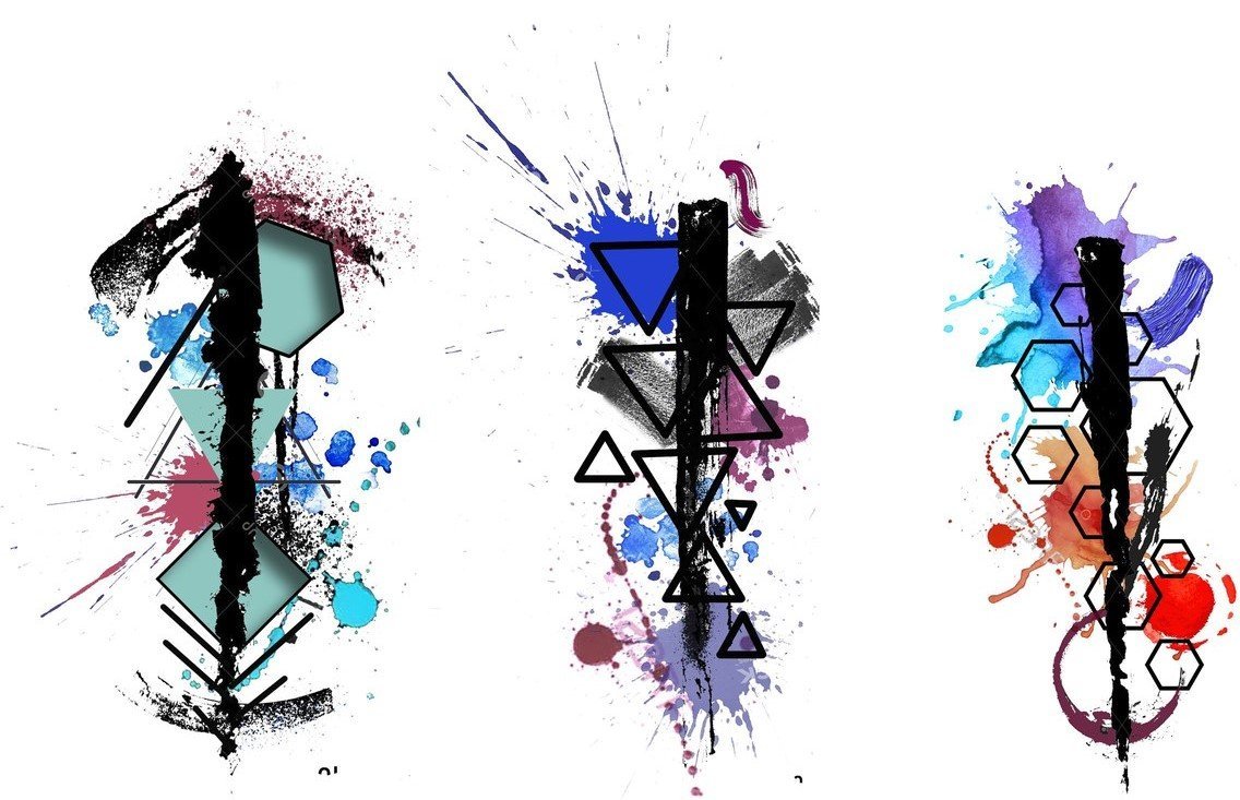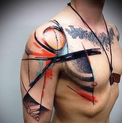 Это могут быть изображения с самой разной тематикой, с различными элементами, в любом цветовом соотношении. Данные татуировки со временем легко дополнить последующими элементами, новыми контрастами. Но все же абстракция включает в себя некоторые группы татуировок: