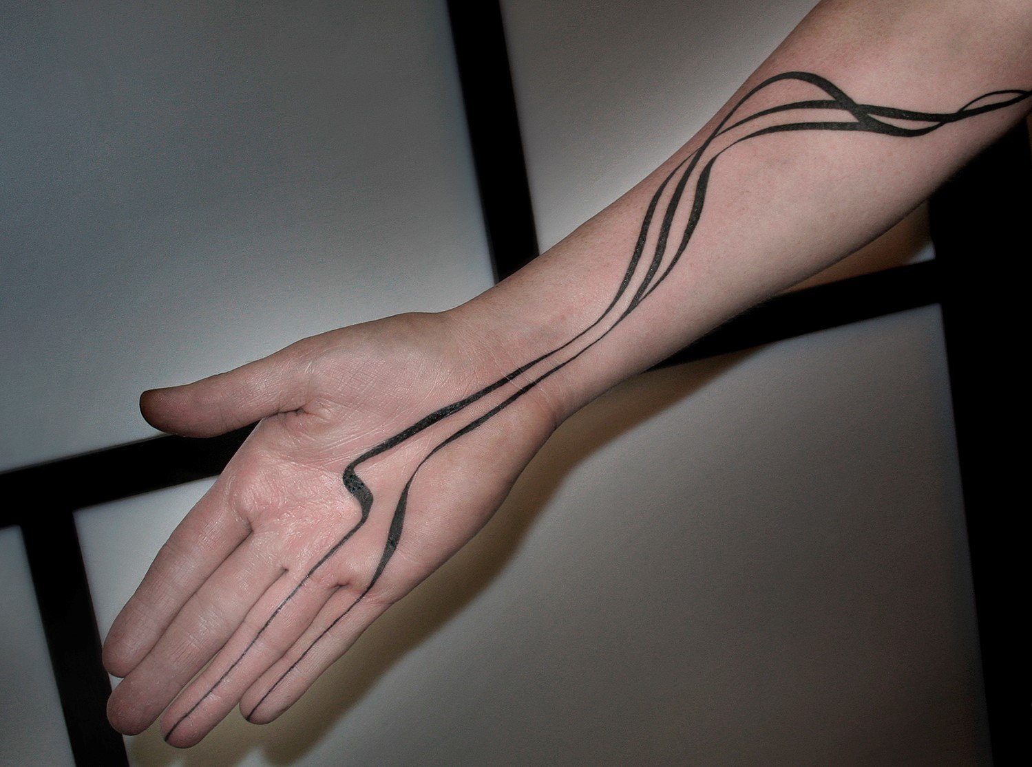 Абстрактные татуировки красиво смотрятся на любой части тела, ведь данный стиль обладает множеством изображений от маленьких до самых объемных. Но в основном такие татуировки предпочитают набивать на руках, это может быть как просто браслет, так и переходящее изображение на всю руку. Браслет украшающий бицепсы мужчин словно подчеркивает размер его мышц, а вот на запястье у девушки браслет смотрится очень нежно и хрупко, подчеркивая женственность. Спину для татуировки обычно выбирают люди, которые не могут полностью определится с размером изображения и самим рисунком. Спина как раз подходит для самого начала, ведь со временем рисунок можно будет дополнить множеством деталей. Девушки часто набивают абстракции на ребра, либо ногах, руках.