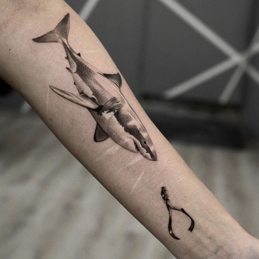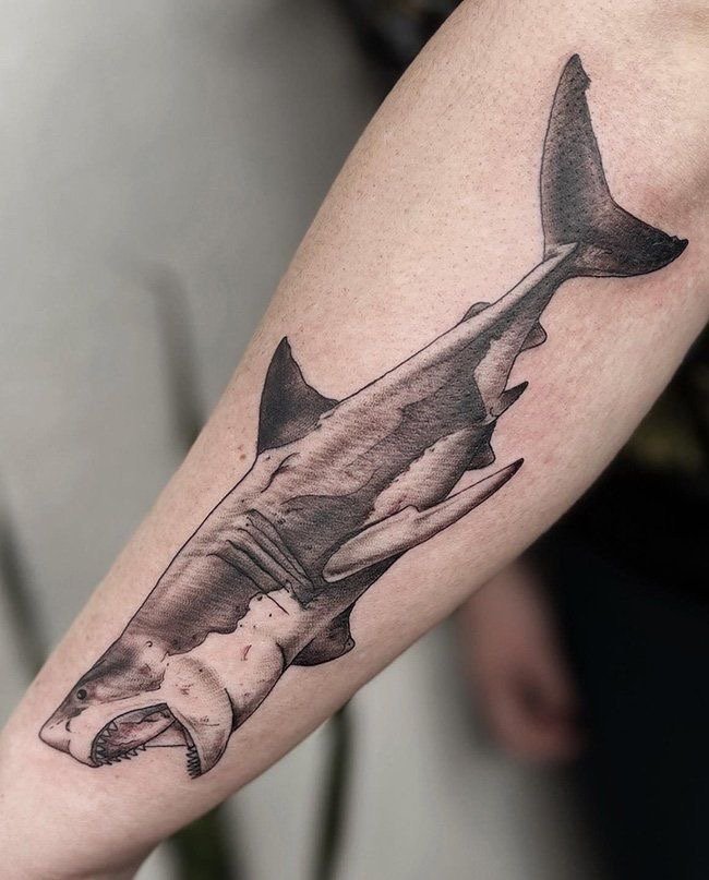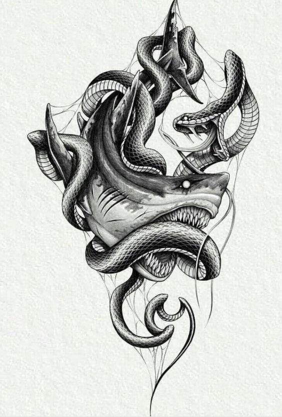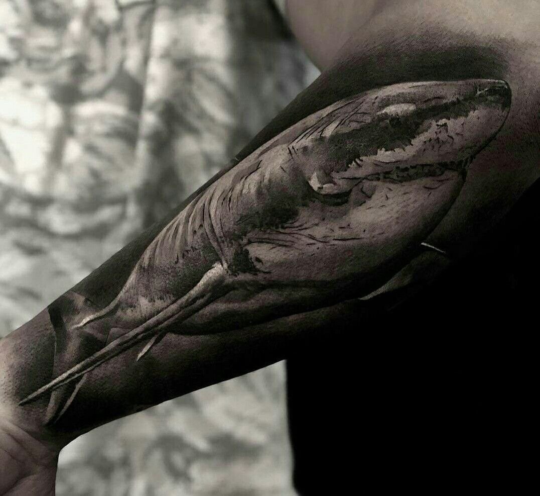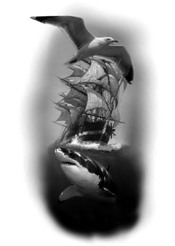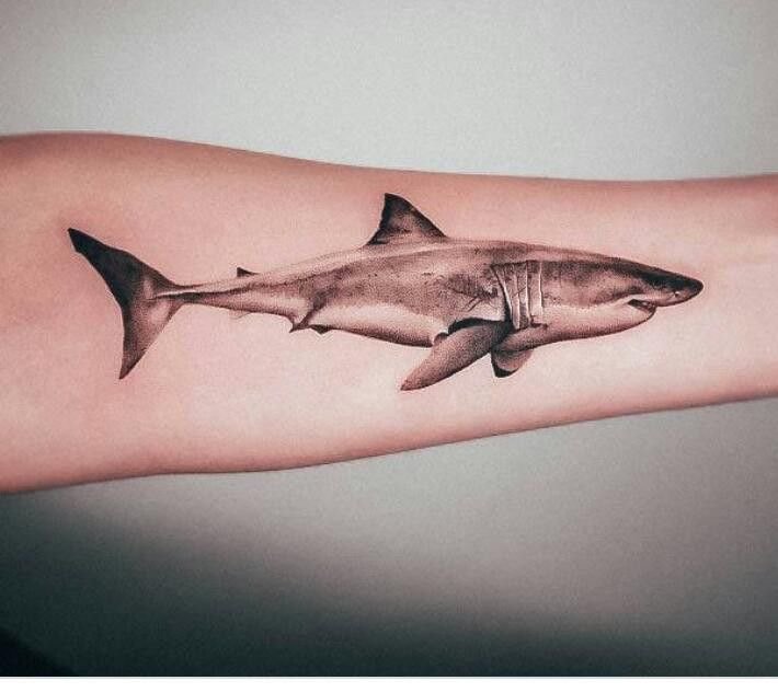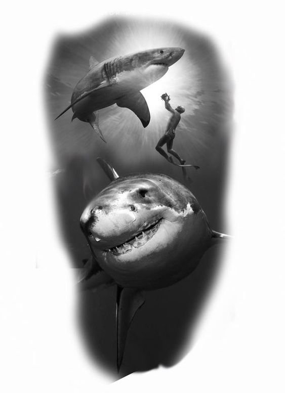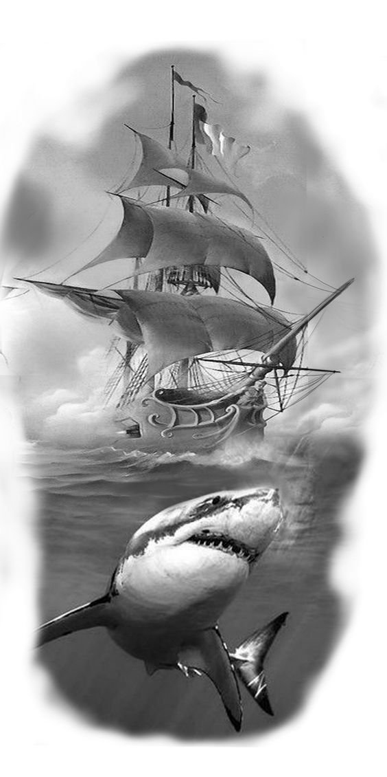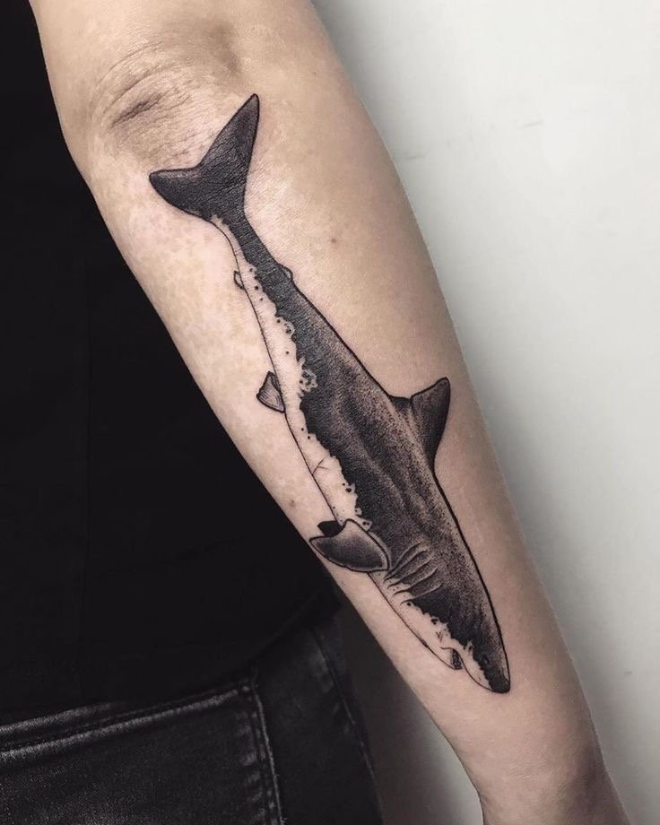 Татуировка акулы – это мощный символ силы, выживания и целеустремлённости.