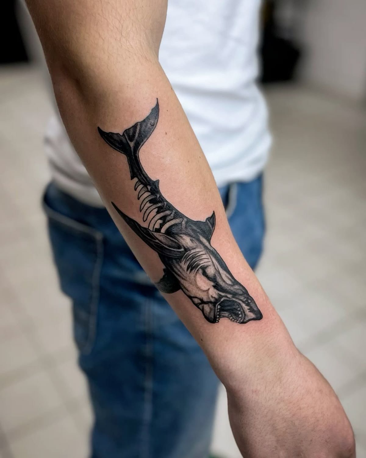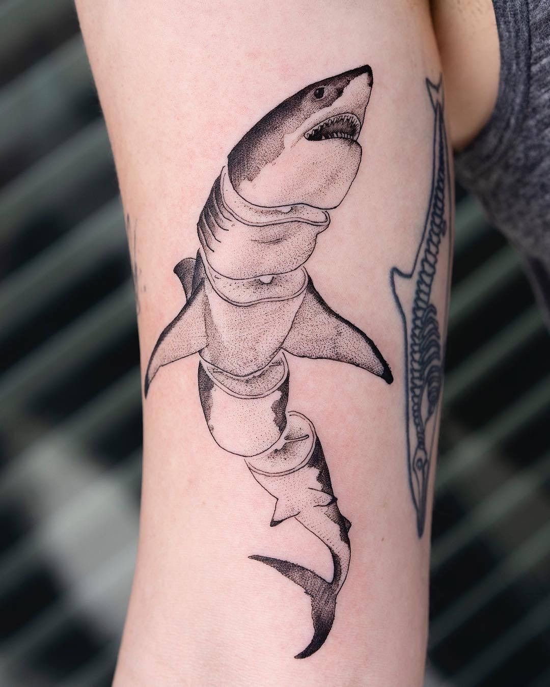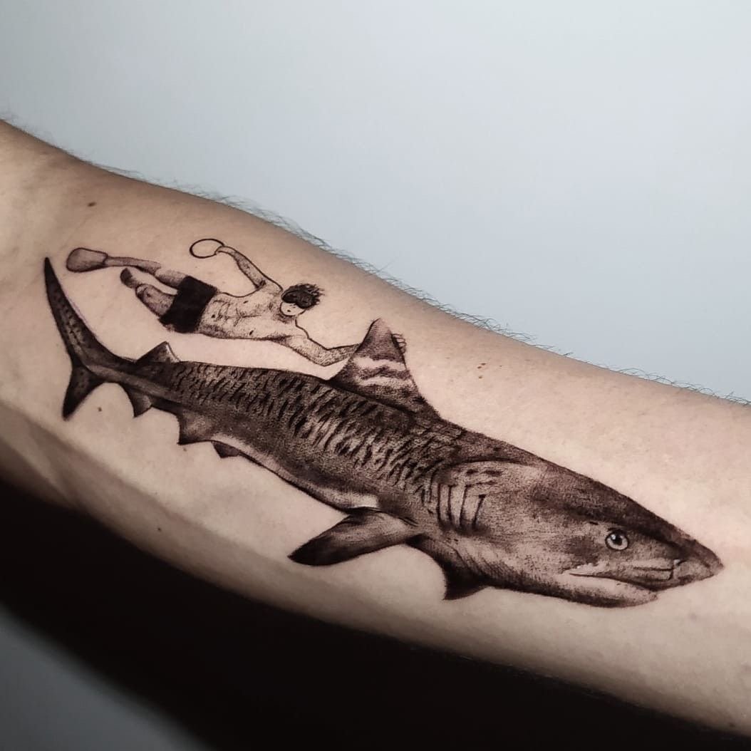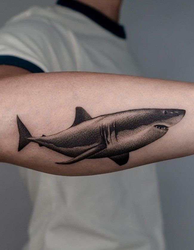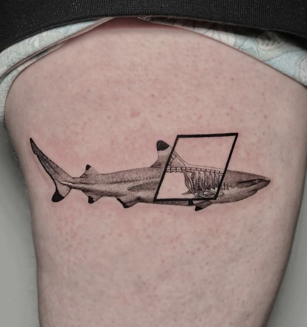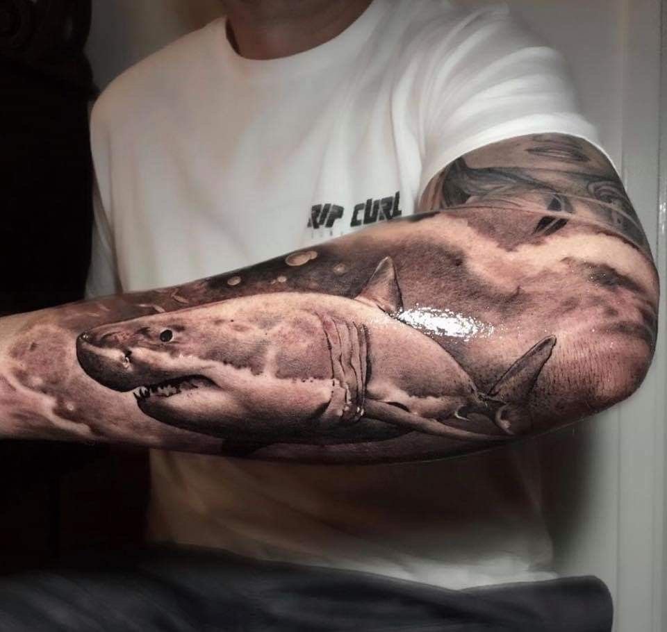 Татуировка акулы – это мощный символ силы, выживания и целеустремлённости.
