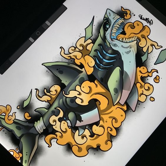 Татуировка акулы может быть выполнена в разных стилях, которые подчёркивают её характер и индивидуальность.