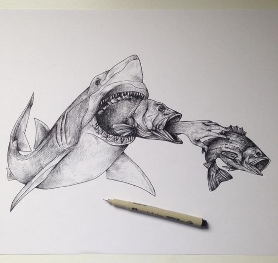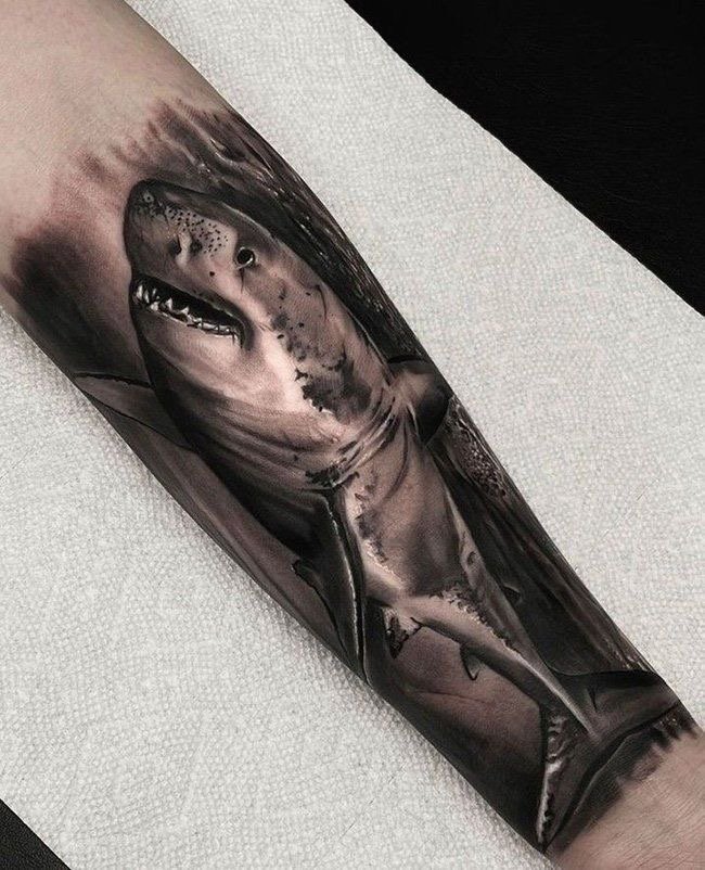- Тату с акулой подходит только любителям моря – несмотря на связь с океаном, этот образ символизирует желание побеждать и умение справляться с любыми вызовами, независимо от профессии или образа жизни.