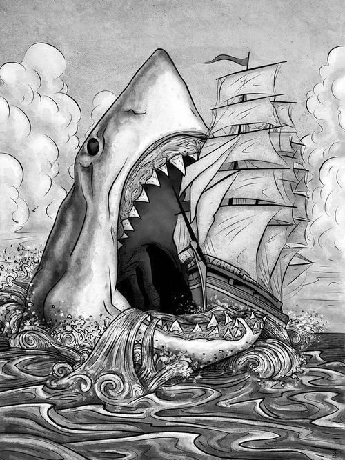 Этот морской хищник воплощает не только природную мощь, но и стойкость, умение двигаться вперёд, не останавливаясь перед препятствиями.