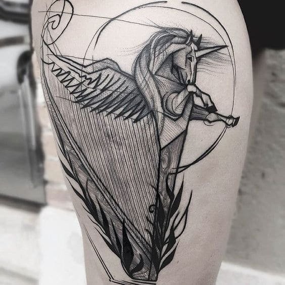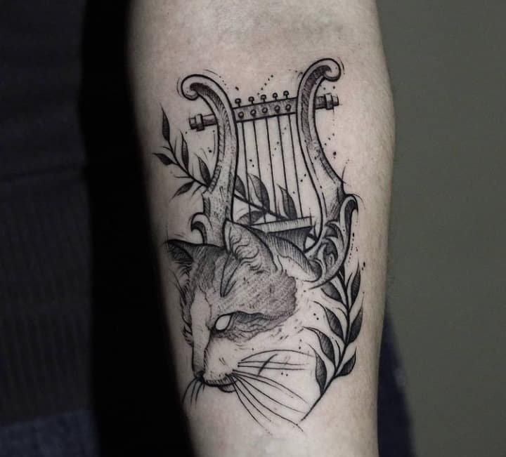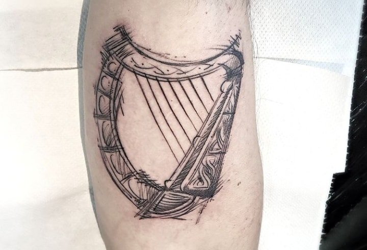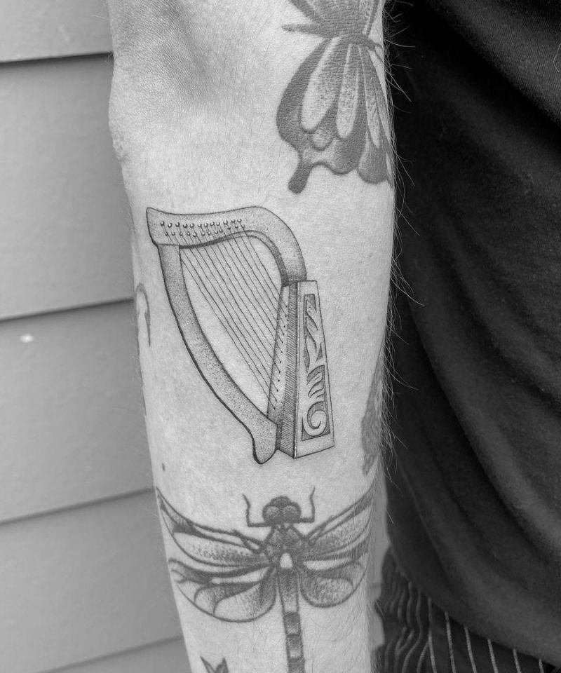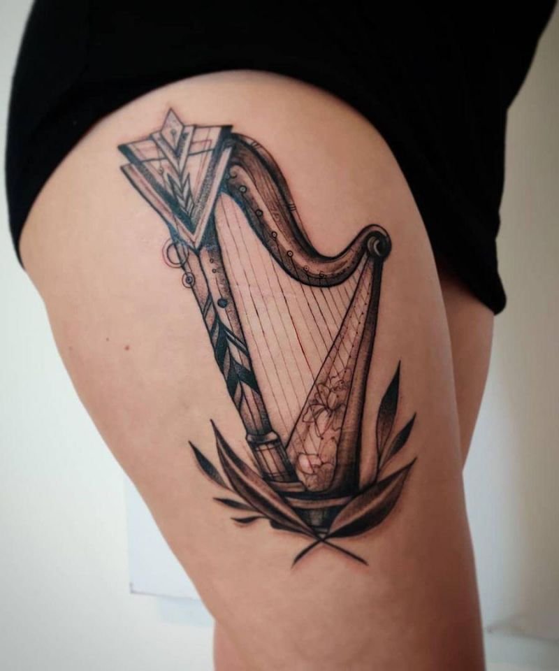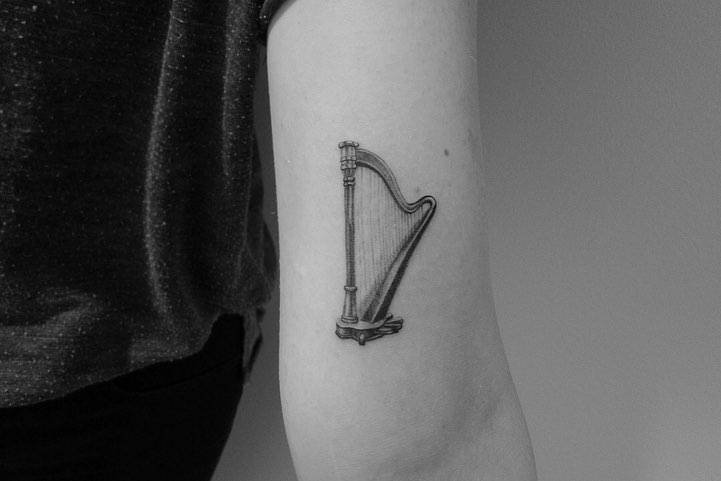 Татуировка с арфой может заинтересовать собой, так как само изображение утонченное и интересное.