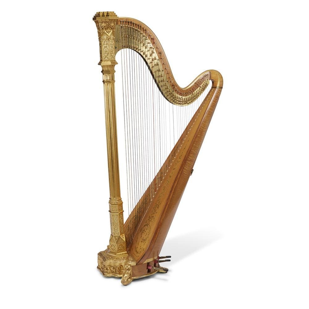 Но первым делом видны внешние черты инструмента. Если вспомнить ее звук, то сразу становиться понятно, что он соответствует внешнему виду изделия. Вспомним ассоциации с этим музыкальным инструментом, который находился около одетых в греческие костюмы персонажей баллад и эпосов. Арфа делает легкую фоновую музыку, сопоставимую с дуновением ветерка, украшая своим звонким звуком помещение.