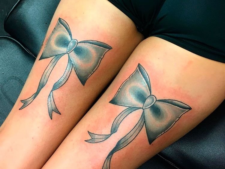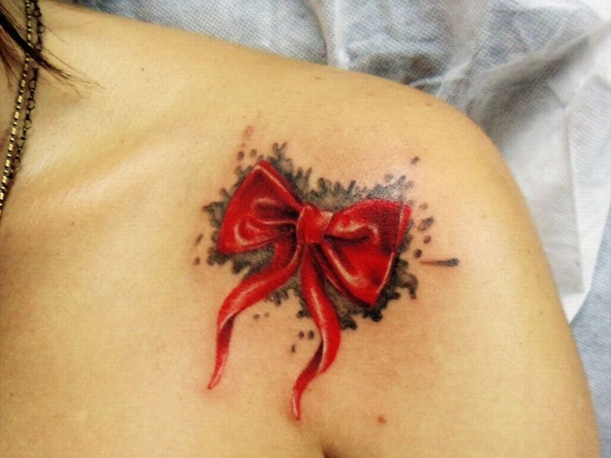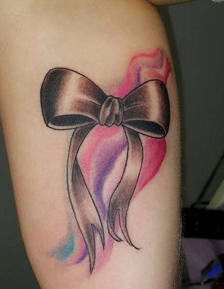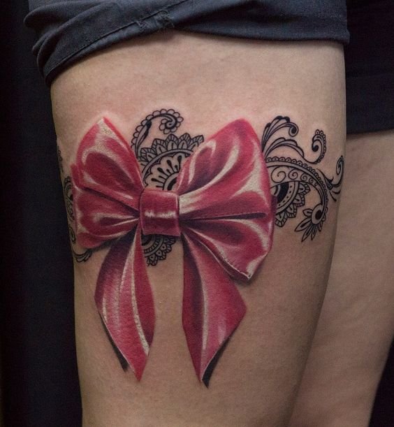 Это могут быть повязки на букетах, подарочных упаковках. Есть множество украшений в форме бантика (брошь, серьги, кулоны и т.п.), часто бант украшает одежду, обувь, сумочку, все что угодно. При этом его главная роль - придавать красоту, делать обычные вещи праздничными, более нарядными и оригинальными. Такое же значение банта и в сфере художественной татуировки. Тату с изображением бантика привлекает своей простотой и необычайной красотой, украшая женское тело, смотрится оно очень оригинально. По популярности татуировки с бантиками находятся в одной категории с изображениями цветов, сердец, звезд и бабочек. Как татуировка, изображения банта довольно яркий, свободный и красивый символ, что превосходно смотрится самостоятельно и с дополнительными элементами. Бант в татуировке может быть исполнен в разных формах, любыми цветами, разного размера и на различных частях тела. Данный рисунок на женском теле в первую очередь говорит о нежности и красоте, добавляя при этом своей обладательнице ноты сексуальности.