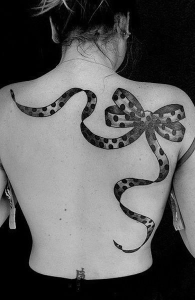 Татуировки условно можно разделить на три категории: мужские, обоюдные и женские. Мужские татуировки наполнены более сильными элементами и более агрессивными оттенками, которые говорят о мужестве, силе, умении защитить и так далее. Что касается татуировок общего плана, так это такие изображения, которые одинаково хорошо будут смотреться на мужчинах и девушках. Женские же татуировки отличаются своей нежностью, яркостью, изяществом и сексуальностью. К примеру изображение бантика на мужчине будет выглядеть крайне нелепо, а вот на женском теле очень нежно и даже эффектно. Данные татуировки несут в себе информацию женственности, сексуальности, гламура и позитива, в зависимости какой размер банта и его цветовая гамма.
