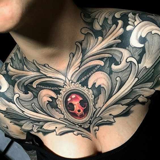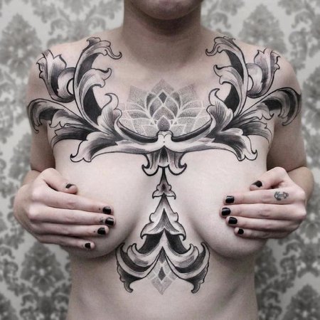 Помимо вышеперечисленного искусства, сегодня тематика роскоши так же является популярной в сфере тату. В которой имеет такие же отличительные черты, как и сама эпоха: сложные орнаменты, уйма подвесок, кружева и драгоценности.