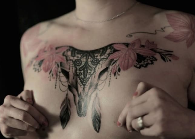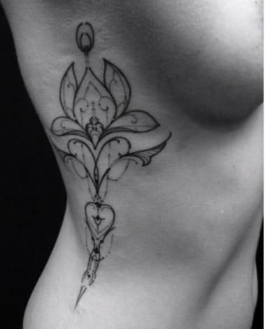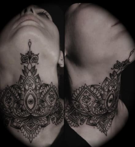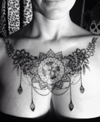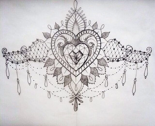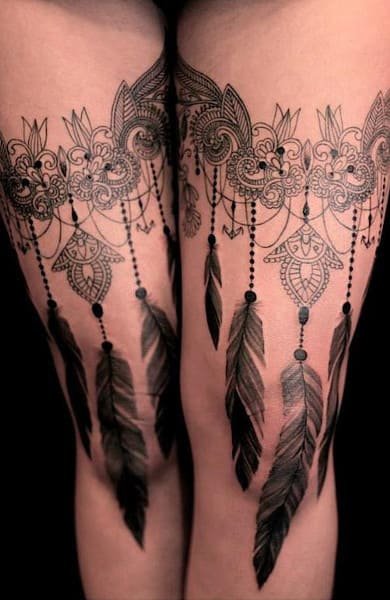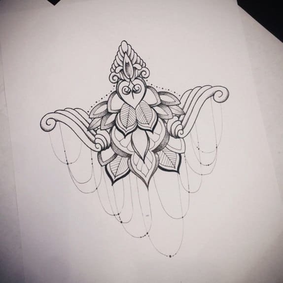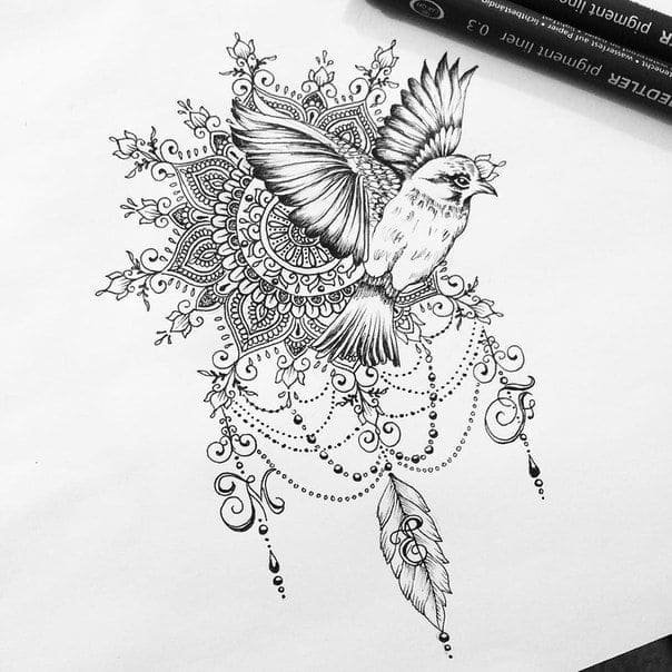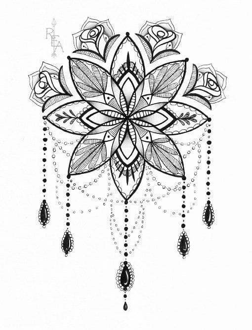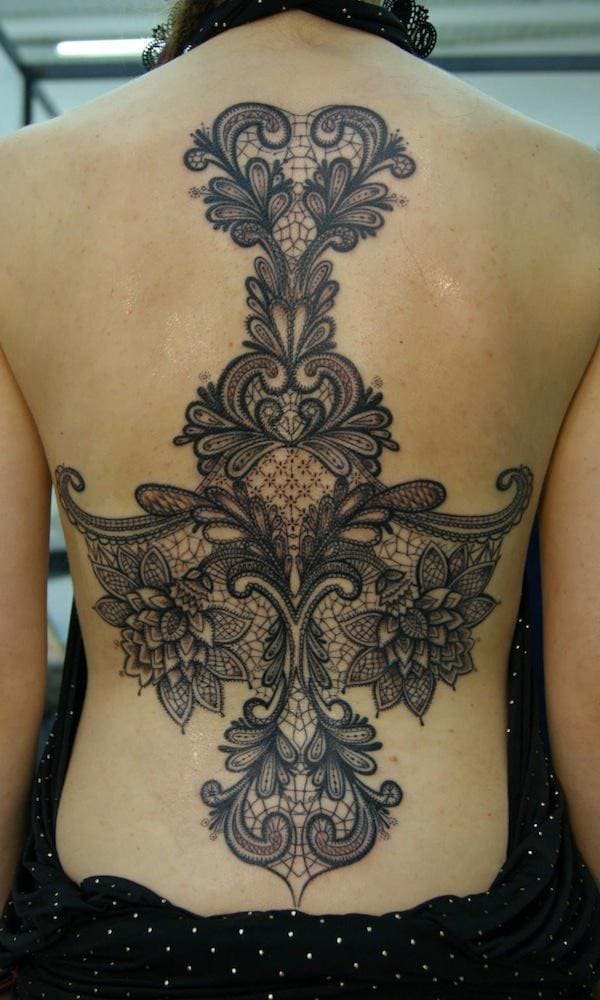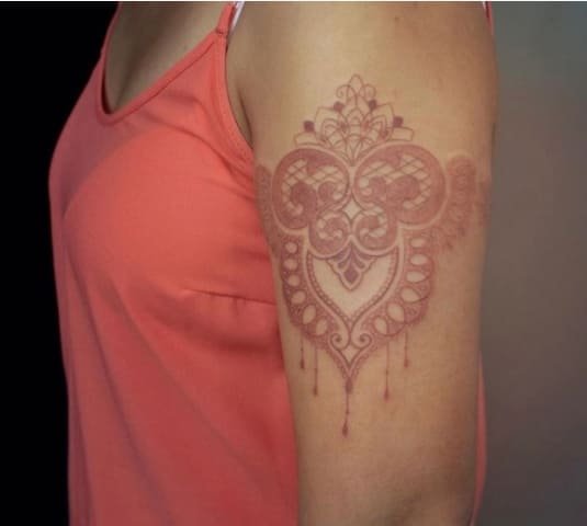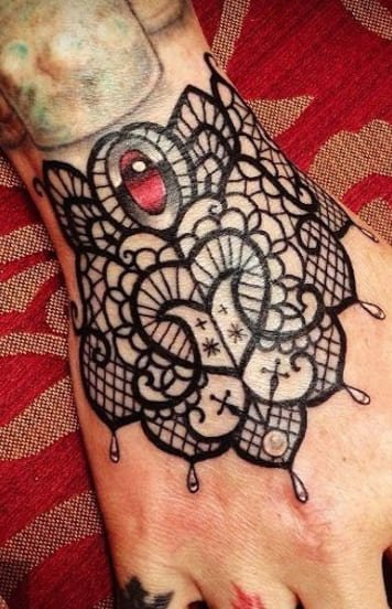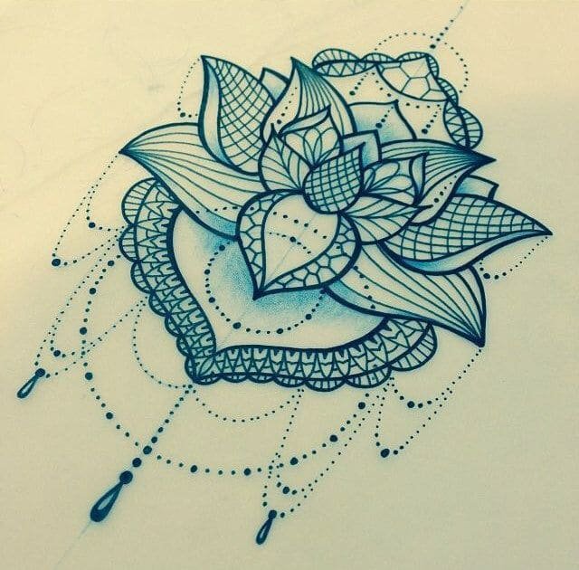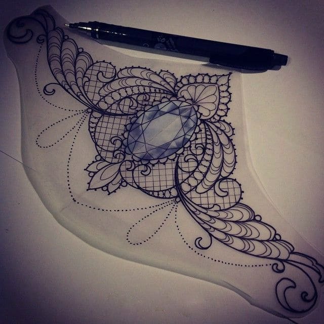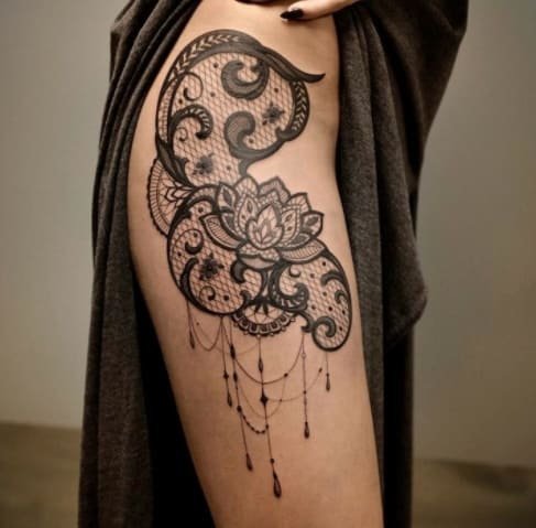 В тату эскизах часто встречаются изображения кружев с дополнением в виде узоров, камней и подвесок. Как правило, данный стиль больше предпочитает женская половина, украшая различными кружевами шею, запястья и ноги. Помимо кружев, часто встречаются образы птиц, бабочек и цветов. Исполнение которых отличается сложностью техники, множеством узоров и драгоценных камней. Какое бы изображение Вы не выбрали (цветок, олень, павлин и так далее), с помощью опытного тату-мастера, любой рисунок превратиться в произведение искусства.