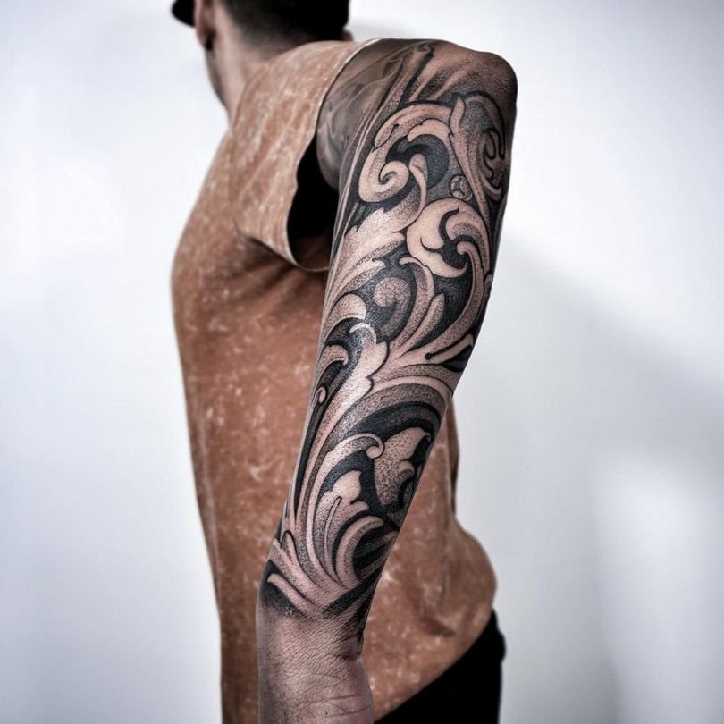 Тату барокко выбирают смелые люди, любящие внимание окружающих и прохожих людей.