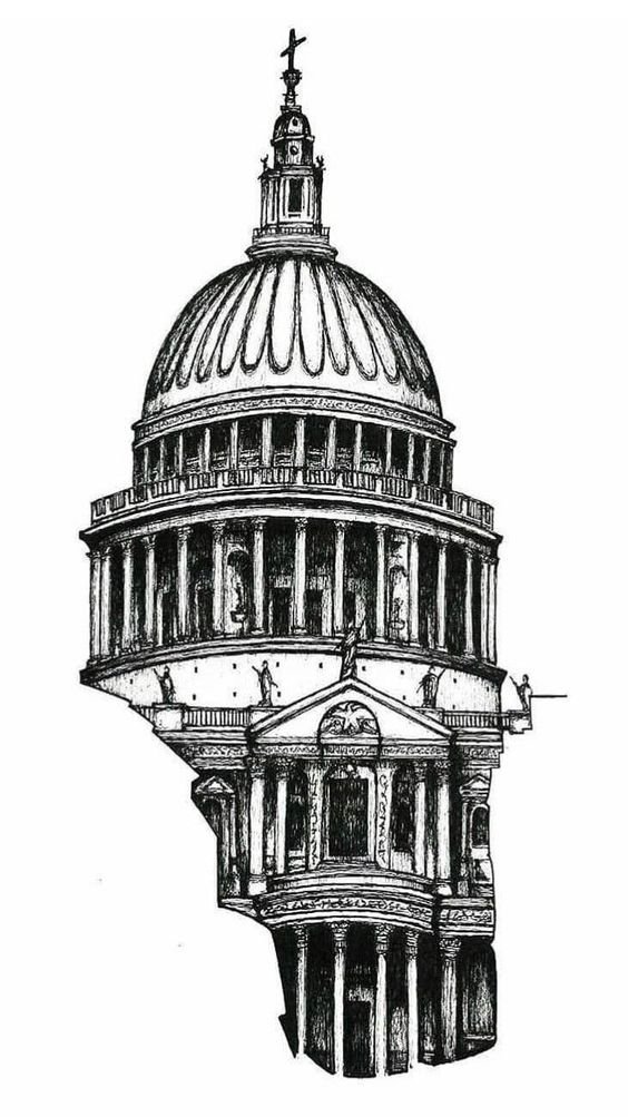 Такие значения вкладывались в татуировку со времен появления татуировок, как украшения. Во времена, когда тату несли более насыщенную смысловую нагрузку, вроде защиты, силы и так далее, таких строений еще не было, потому подобными значениями были наделены другие предметы.