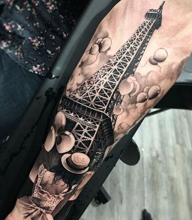 Также обладатель такого тату может быть любителем путешествий, так как это тоже развитие. Кроме того, это может быть известное строение, что укажет и на романтичность, и на страсть к изучению нового, и на симпатию к красивым местам. В случае, если башня действительно узнаваема, она укажет на любимый объект, строение, которое запало в душу человеку. Это также может быть память о путешествии, например, во Францию.