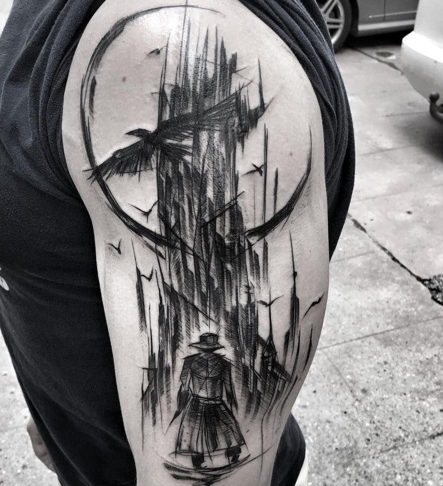 Немаловажен будет и размер работы. Пусть на значении он не сказывается, но параметры татуировки башня также играют роль – это заметность, яркость, стиль. Что касается цветовой палитры, тут выбор остается только за Вами: это могут быть естественные цвета или измененные по желанию или выбранной тематике тату.
