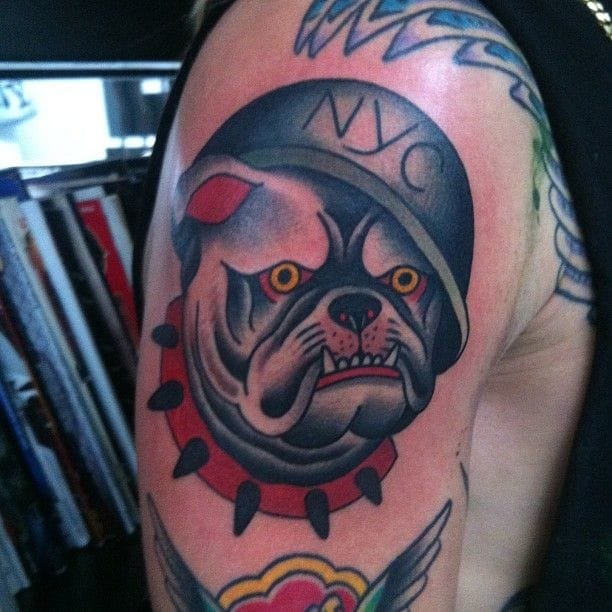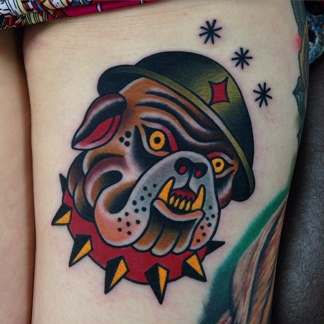 Интересно знать, что в Америке татуировку с бульдогом в основном набивают морские пехотинцы, а в Англии изображение бульдога на теле человека говорит о его принадлежности к наследию.