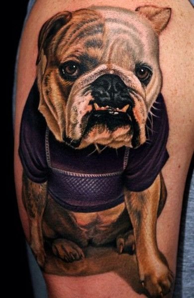 Изображение бульдога на теле человека может быть исполнено в самом разном стиле, технике и направлении, но есть три отдельных категории исполнения: