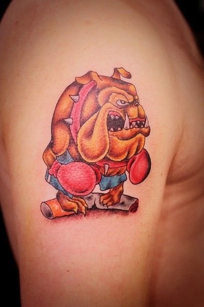- Особого обозначения в татуировках такого типа нет, чаще всего такие татуировки говорят о том что их обладатель жизнерадостный, веселый, непринужденный человек. Такие изображения на теле безусловно будут притягивать взгляды прохожих и окружающих людей. Так же изображение с мультипликационным бульдогом говорит что в душе обладателя все еще есть ребенок.