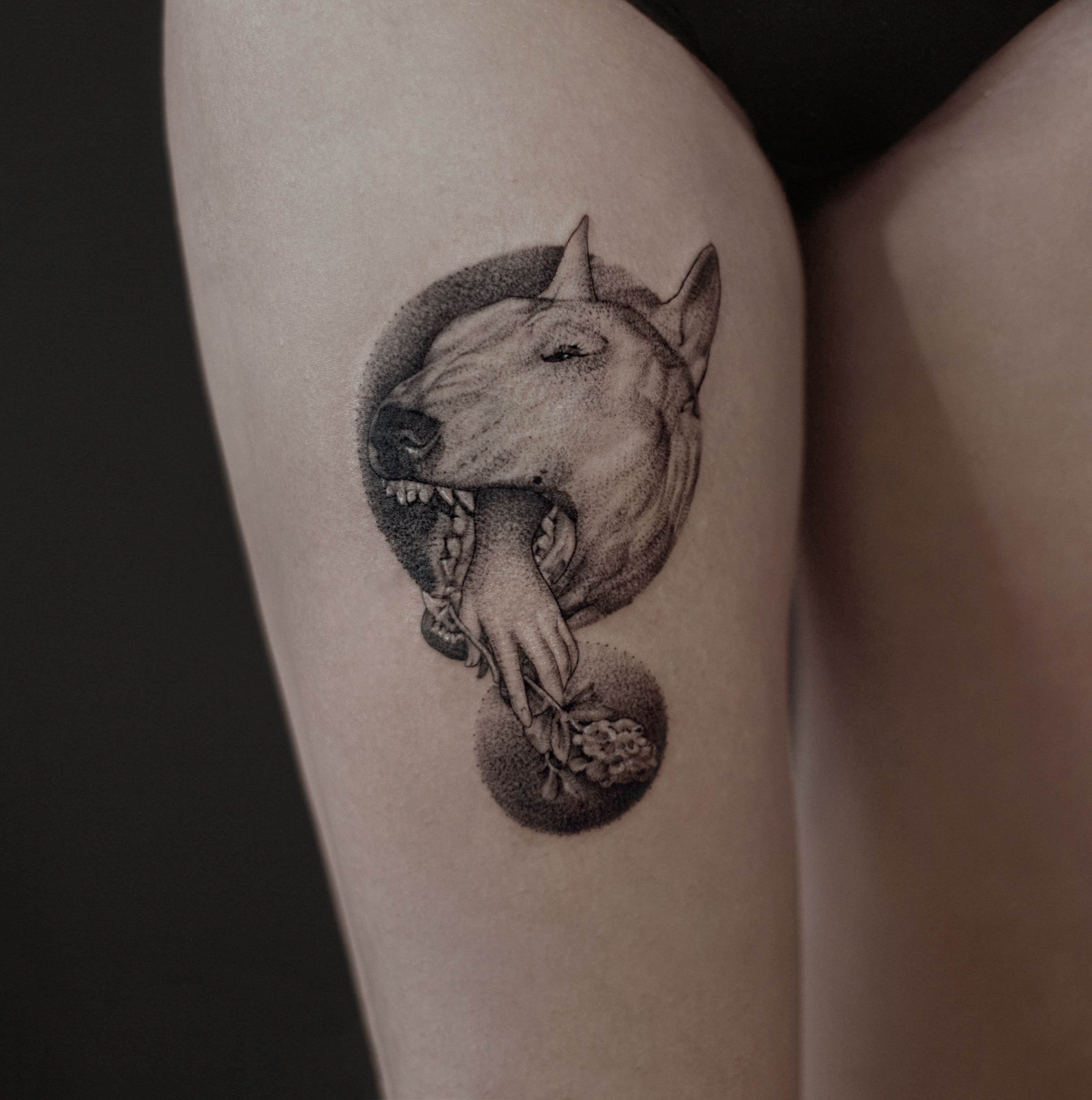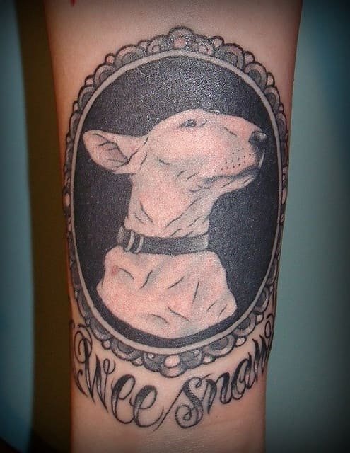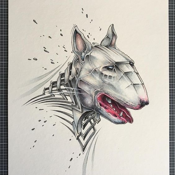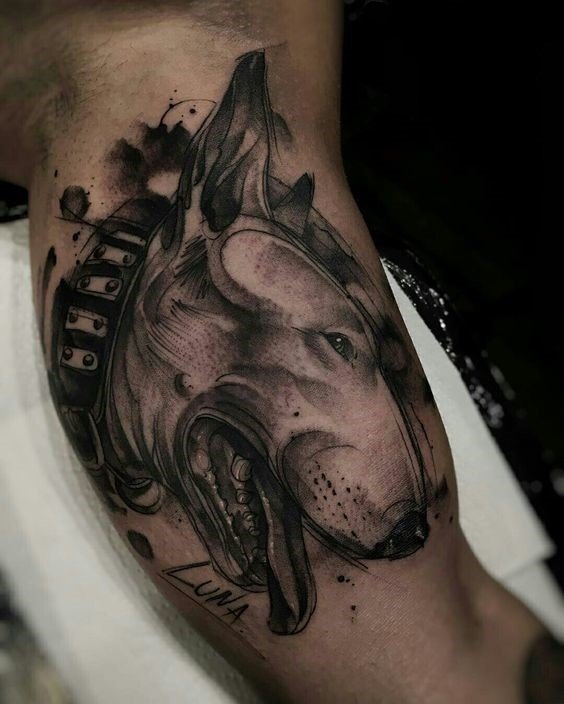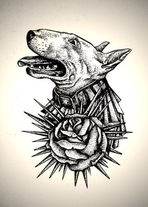 Тату-эскиз бультерьера так же может говорить о любви человека к животному миру, привязанности к собакам, либо любовь именно к данной породе.
