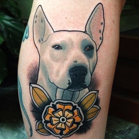 Тату это не только прекрасная возможность выразить свою индивидуальность, с помощью нательного рисунка можно отображать свои эмоции, свой настрой, подчеркивать сильные черты характера, либо и вовсе рассказать о своей жизни. Кроме того, татуировки позволяют закрыть различные дефекты в виде шрамов либо ожогов и так далее. Огромное количество людей пользуются услугами тату-сферы, каждый может найти именно тот эскиз, который полноценно подойдет по душе. Достаточно большое количество людей предпочитают украшать свои тела изображениями животных, а в частности портретами собак. Существует немалое количество собачьих пород, в данной статье мы рассмотрим татуировки с изображениями бультерьеров.