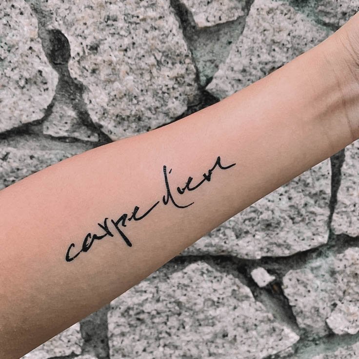 Татуировка с Carpe Diem часто трактуется как напоминание о важности момента, отказе от сожалений о прошлом и тревог о будущем. Она может символизировать любовь к путешествиям, желание раскрыть потенциал или стремление к личной свободе. В зависимости от шрифта, стиля исполнения и дополнительных элементов рисунок может приобретать более индивидуальный характер.
